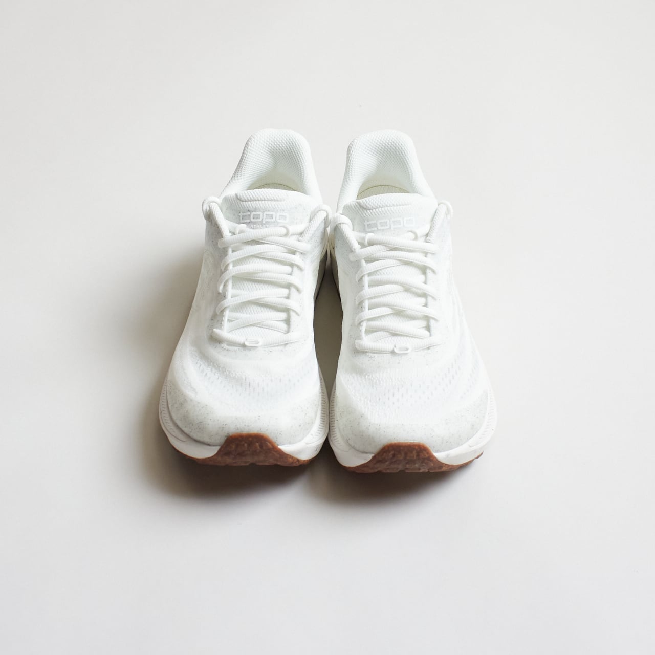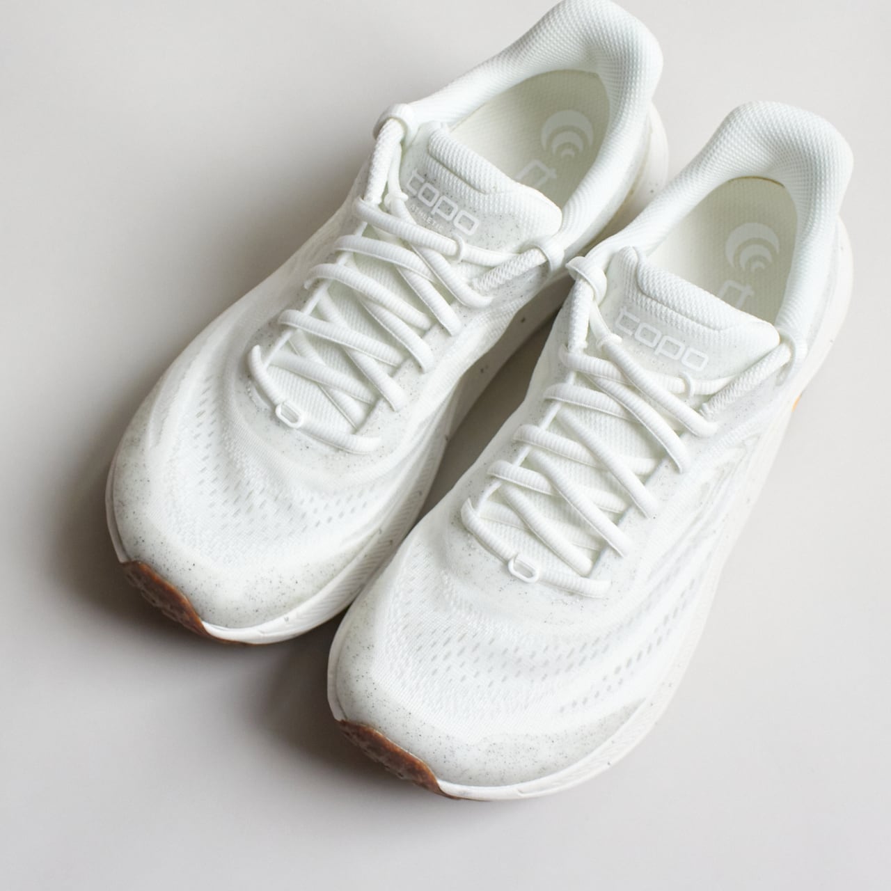 ふっくらとしたプラットフォームは、Topoの特徴であるroomy tow boxと組み合わされ、長時間の快適性を提供すると同時に、ZipFoam™ミッドソールによってライトかつソフトで反応性の高い接地感を提供します。