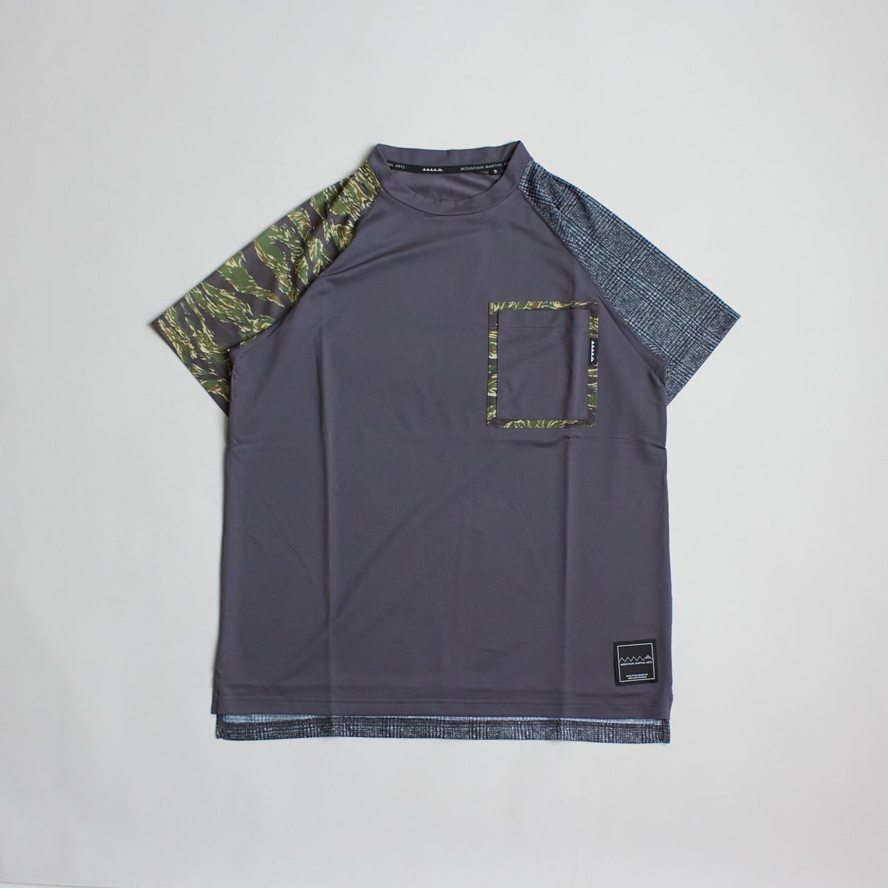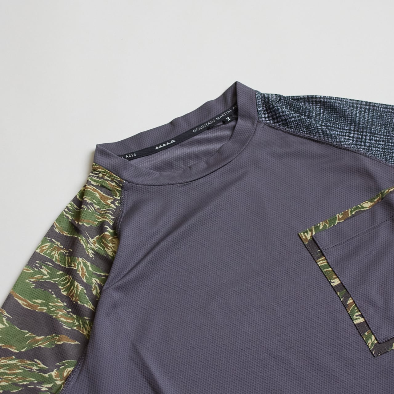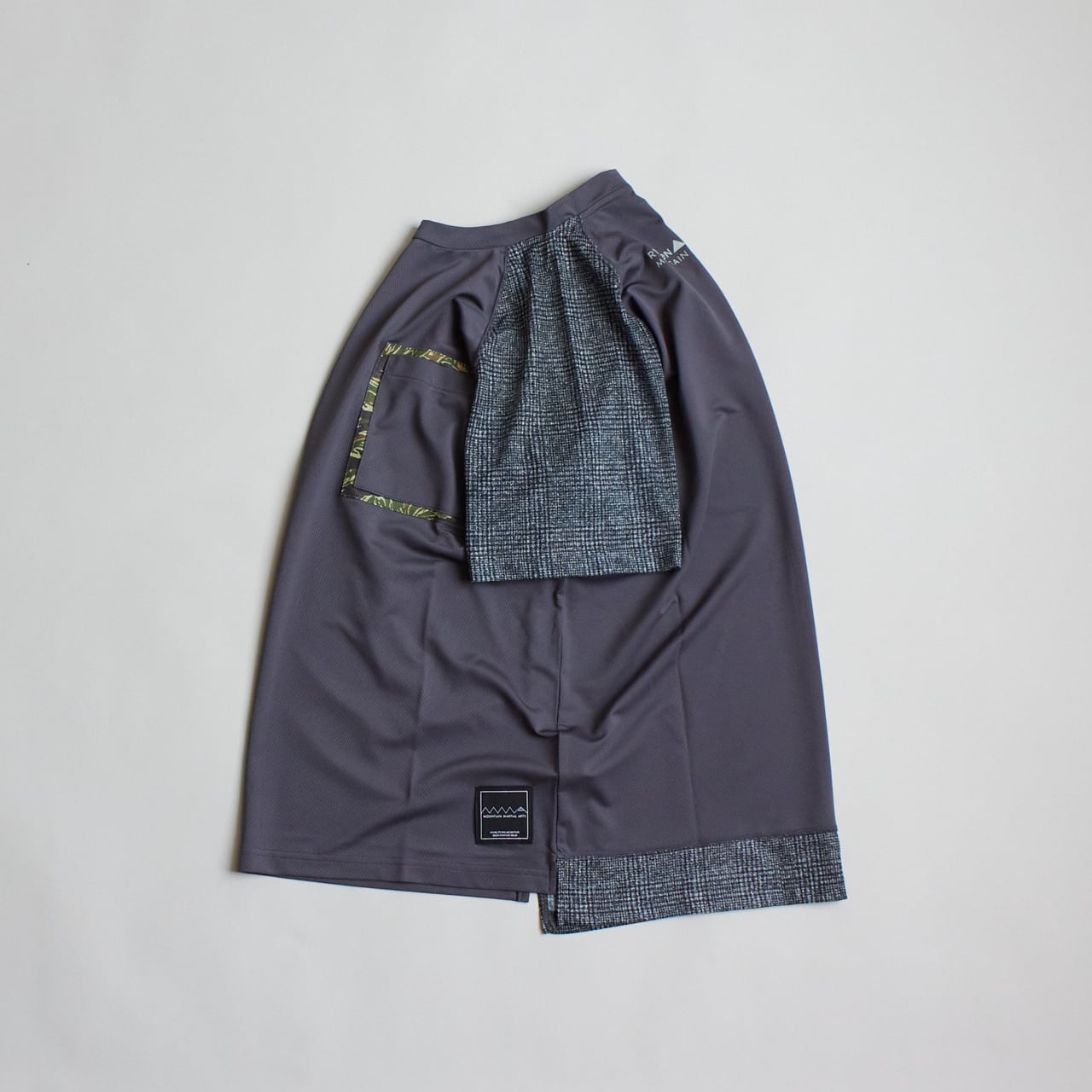 RYOGENの枯葉柄とグレンチェック柄をアレンジし、MMAのプロダクトに落とし込んだ、ランニングからタウンユースまで使えるラグランTシャツです。