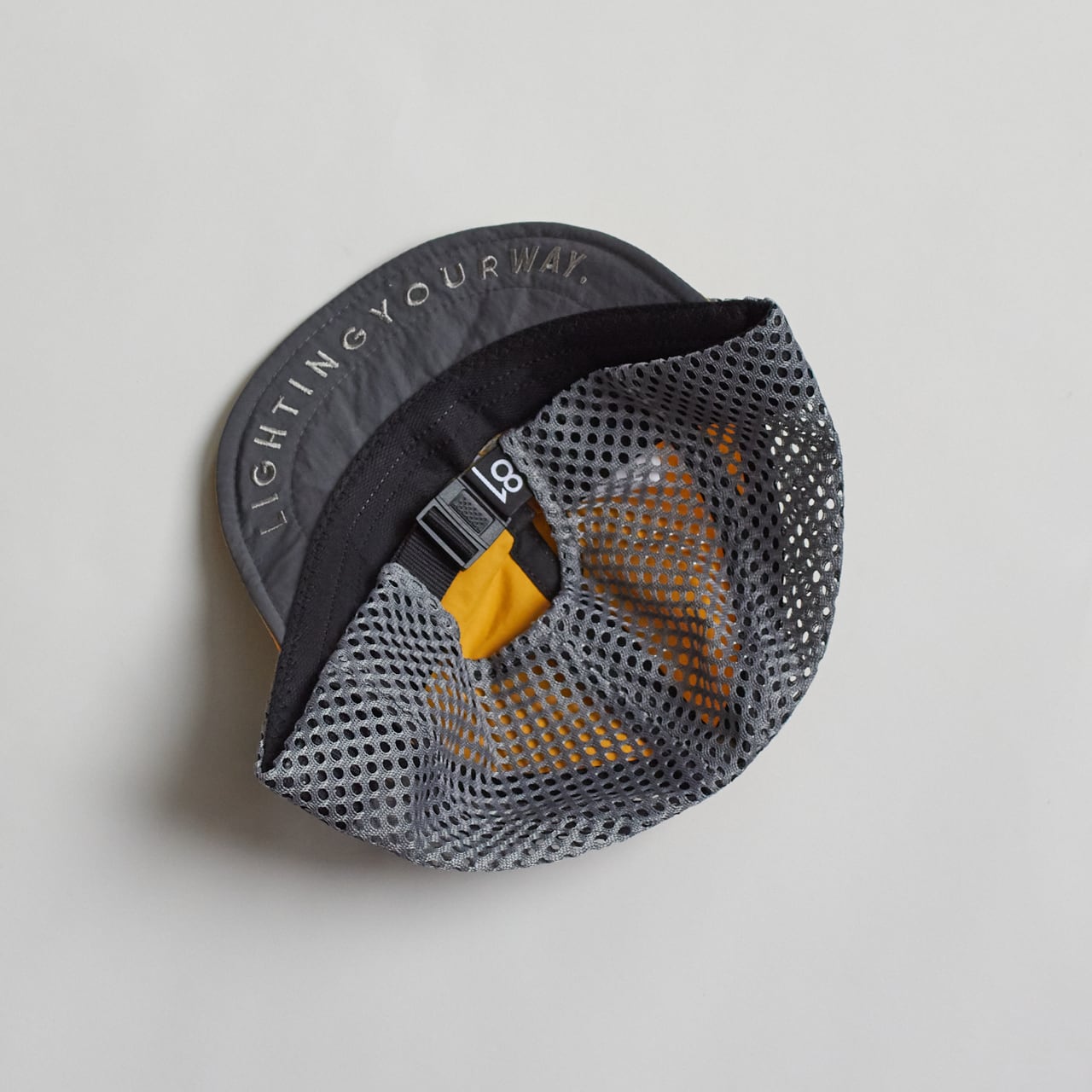 ヘッドランプ装着時でもツバを下に向ければ、ライトの灯りが遮られなく照射可能。