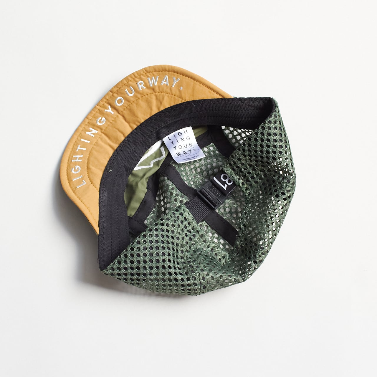 ワンポイントロゴとツバ裏に『LIGHTING YOUR WAY』を刺繍で落とし込んだ。