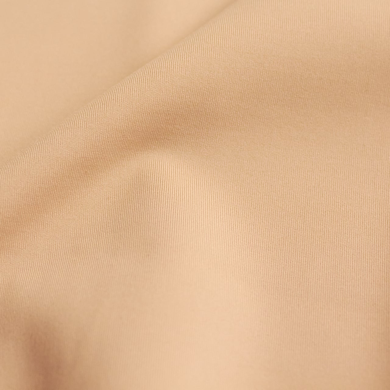 しっかりとした厚みと滑らかな肌触りで、動きにフィットしながら型崩れしにくく、透けも防ぎます。摩擦にも強いのでランやトレーニングでも快適です。