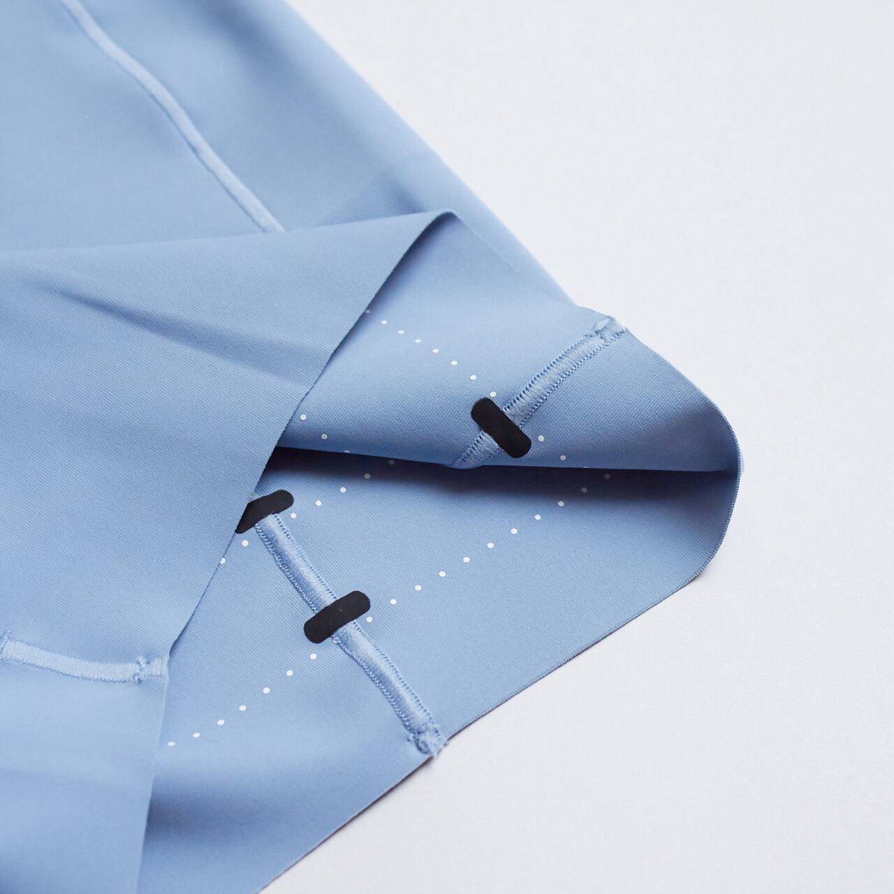 しっかりとした厚みと滑らかな肌触りで、動きにフィットしながら型崩れしにくく、透けも防ぎます。摩擦にも強いのでランやトレーニングでも快適です。