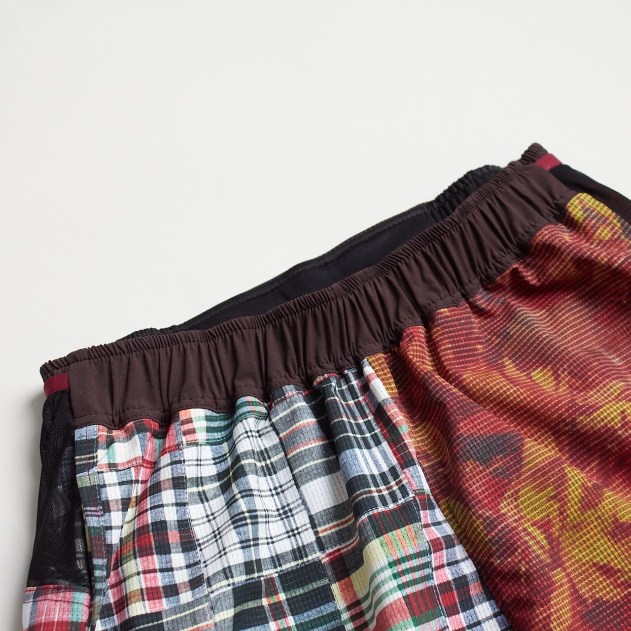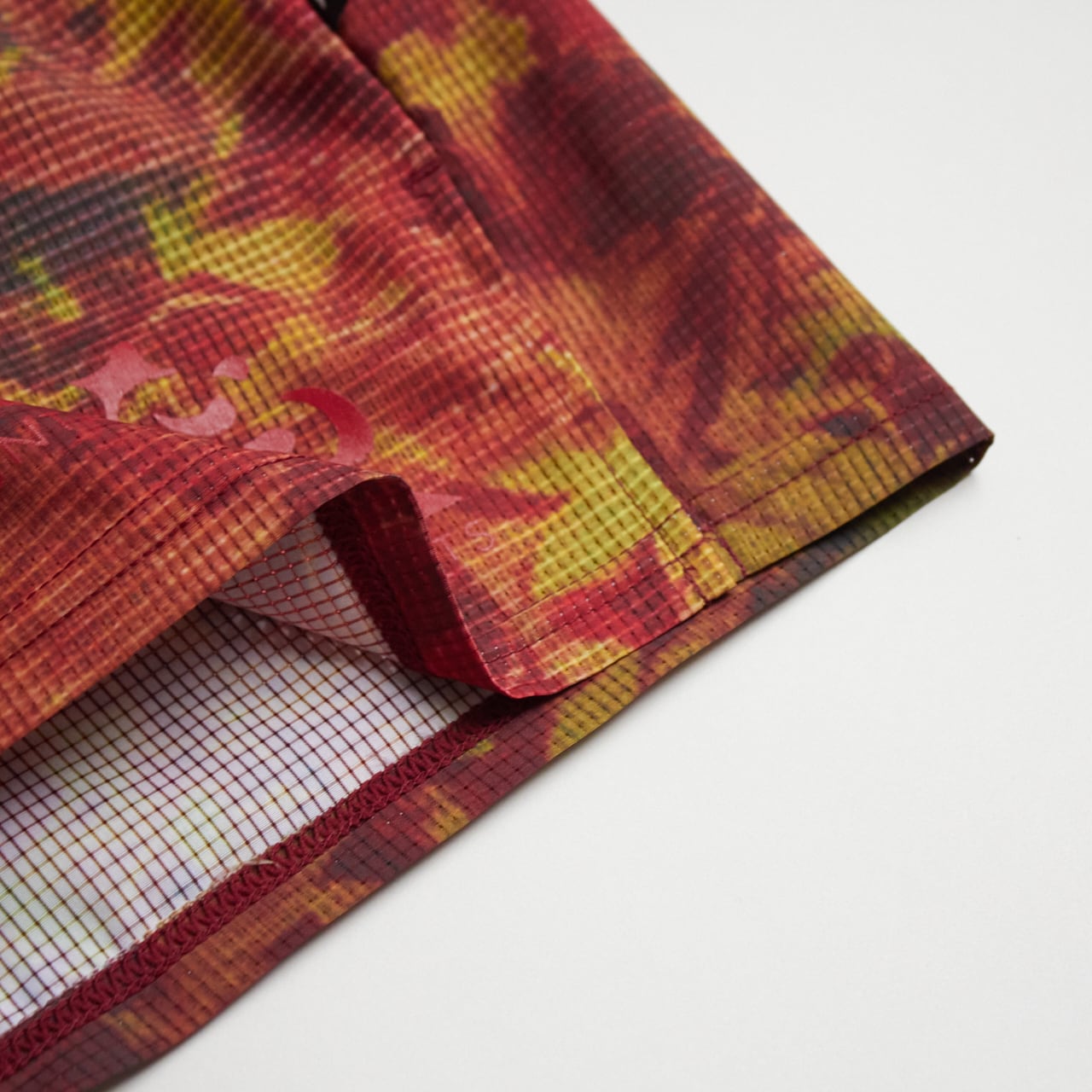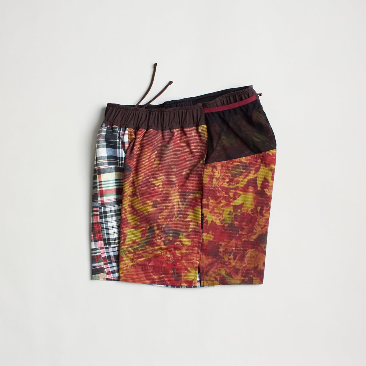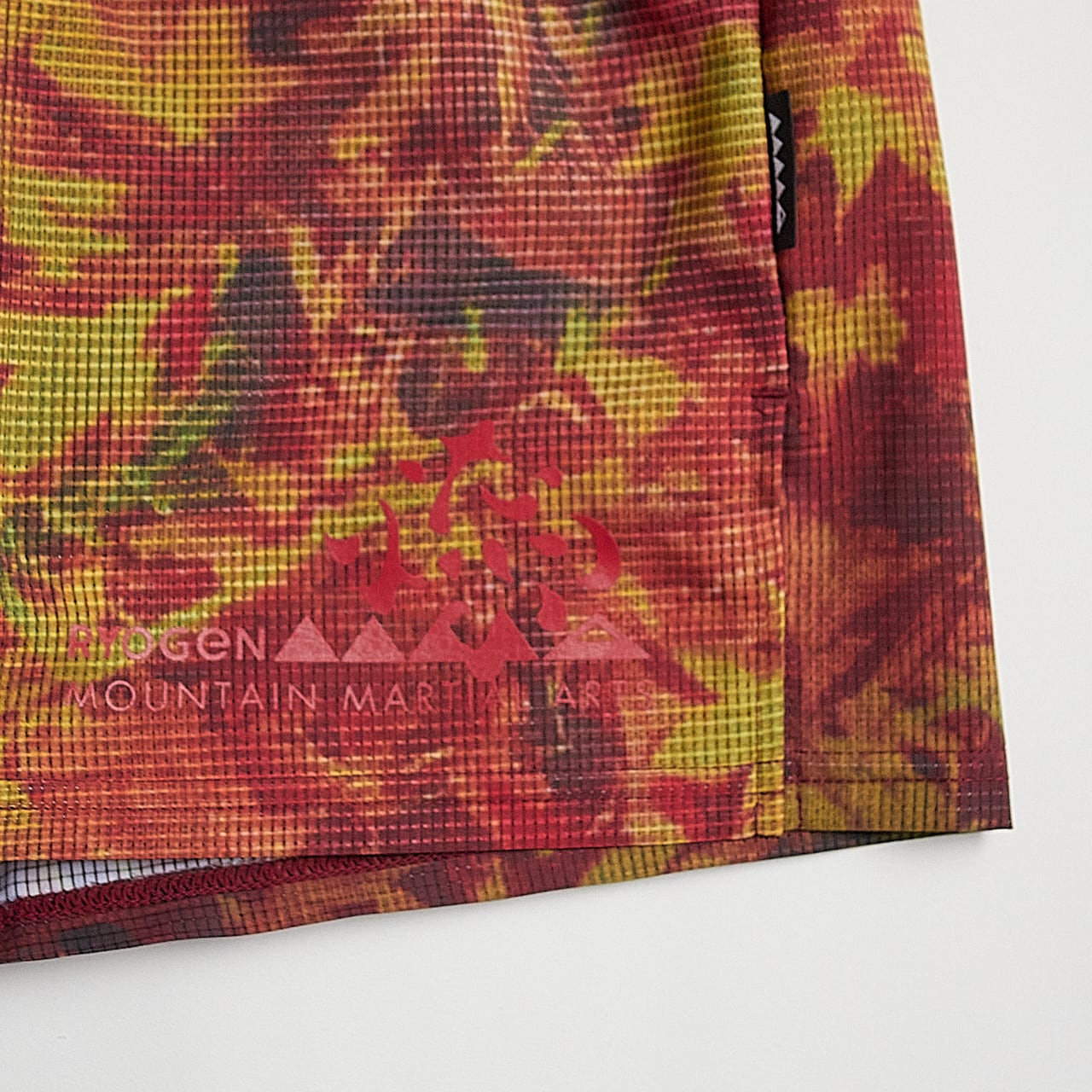 福井発、新進気鋭のランニングブランド「RYOGEN」とのコラボレーションコレクション。RYOGEN の枯葉柄とグレンチェ ック柄をアレンジして、MMA のプロダクトに落とし込んだ。サイドスリット、スマートフォン収納ポケット、立体的なライナ ーなど、速さと快適さを追求したランニングショーツ