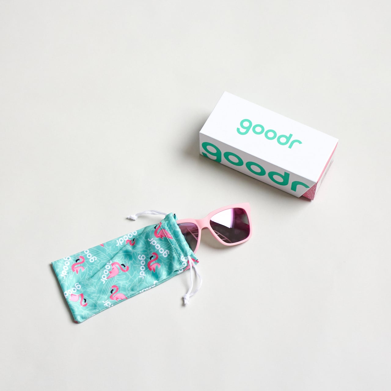 サングラスを入れているgoodr袋はマイクロファイバーのバックとなります。持ち運びはもちろん、お手入れにもぜひご利用ください。