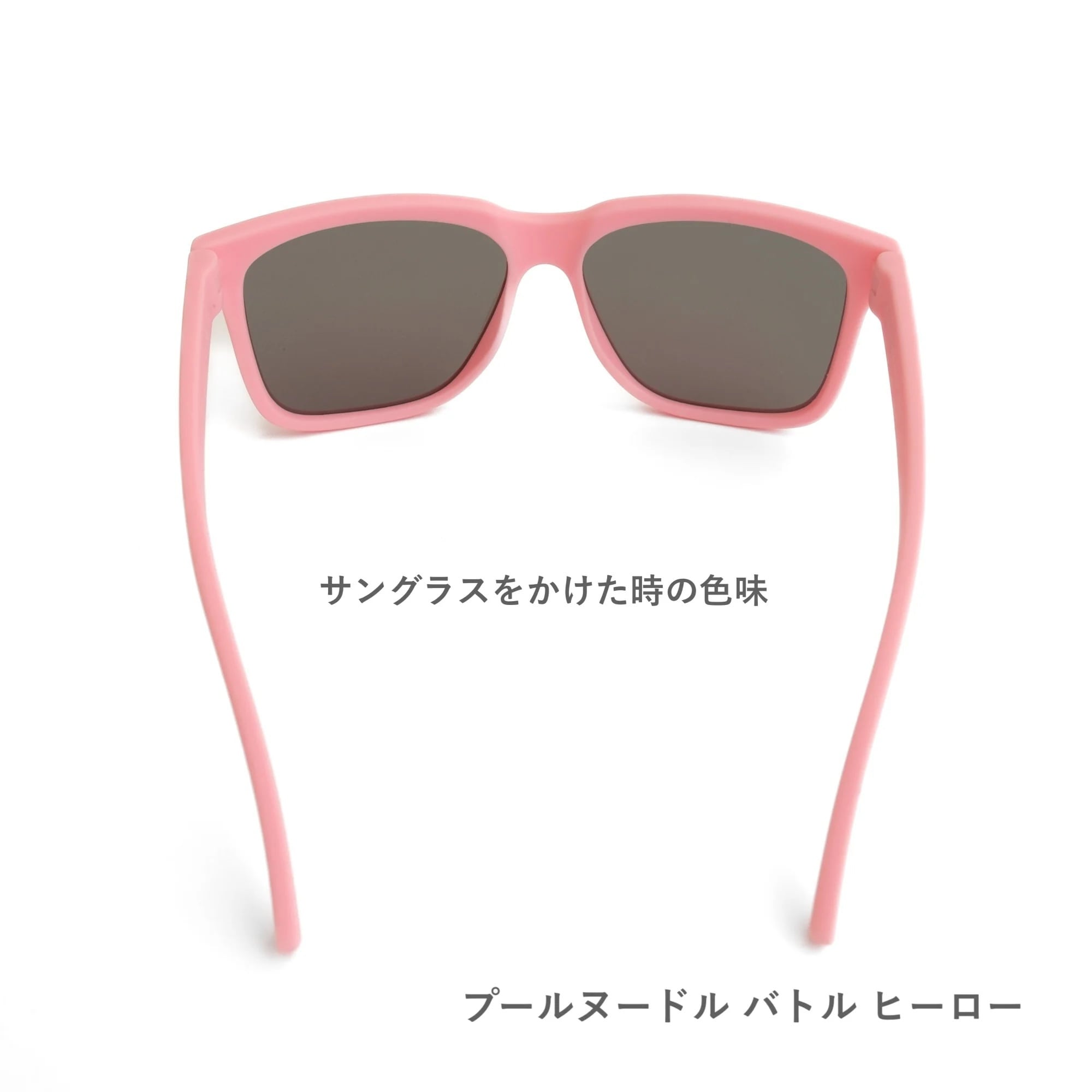 ピンクフレーム×ピンクレンズのキュートなサングラス。プールの主役はあなたです!
