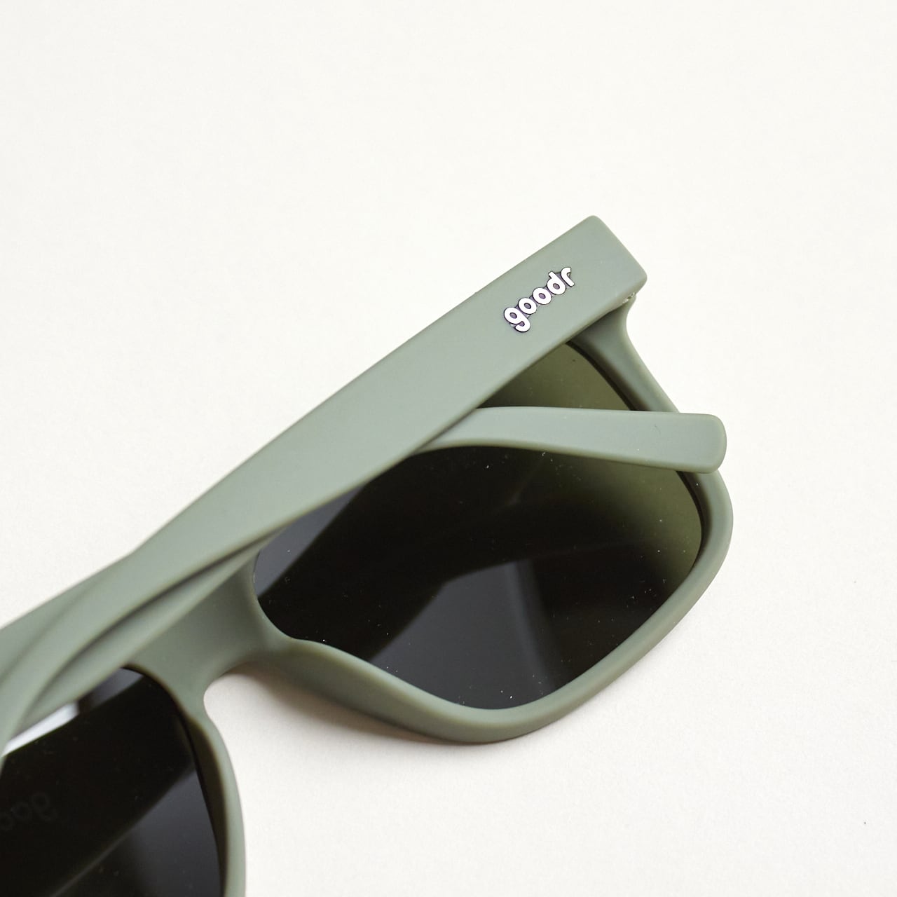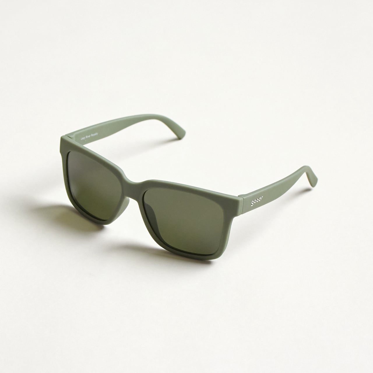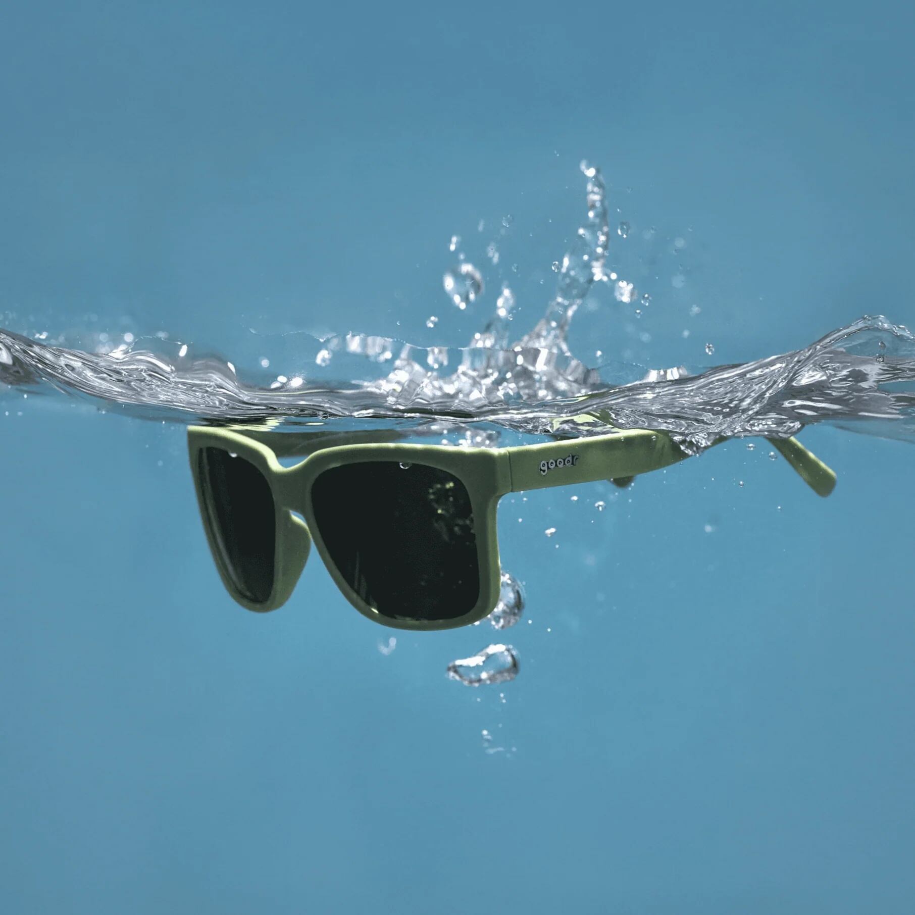 ダークグリーンのTidal Gフレームに、グリーンのノンリフレクティブ撥水レンズを備えたこのモデルなら、たとえ気分は迷子のマナティでも、見た目はまるで王族。