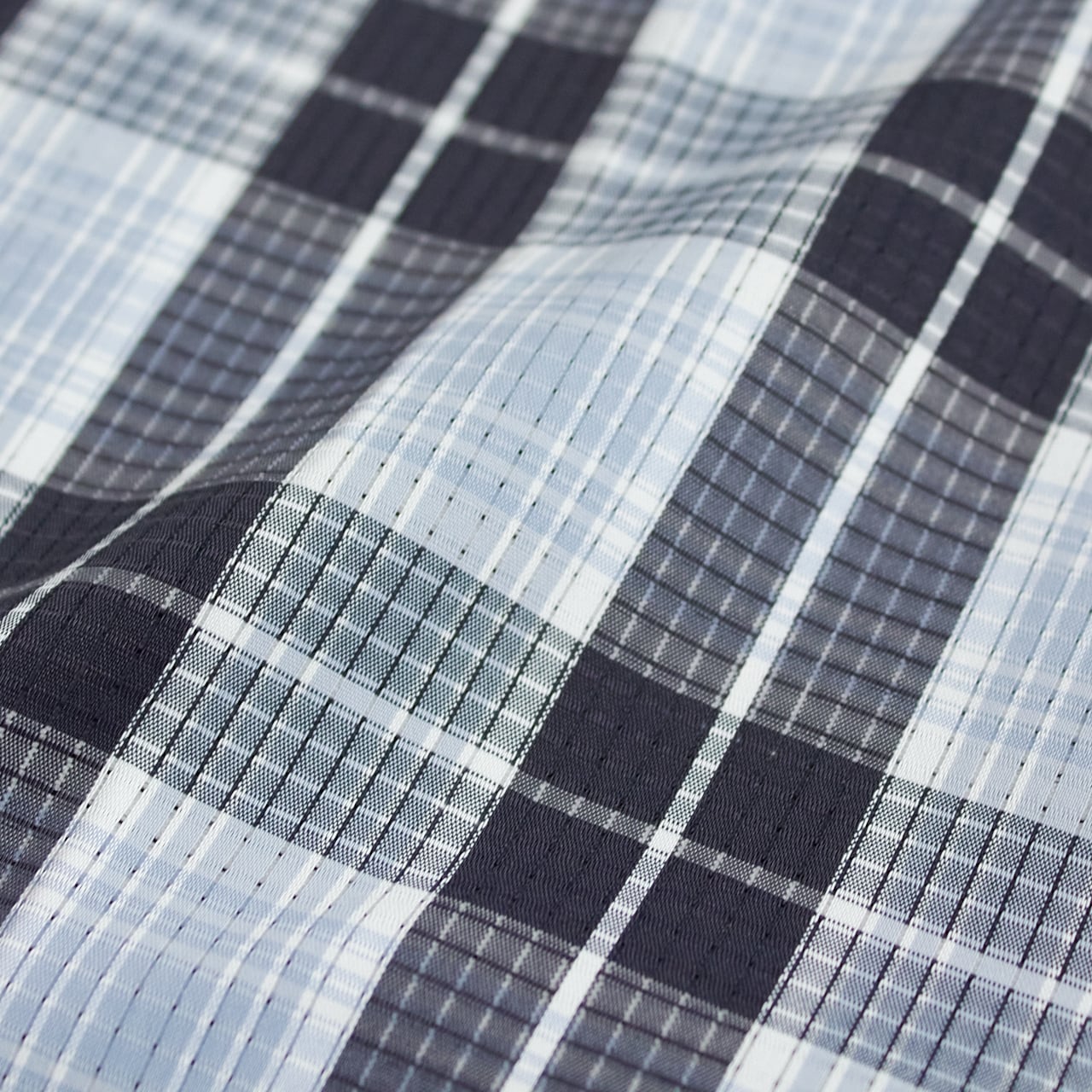 トラッド感のあるチェック柄の Primeflex™ Dot Air® を使用した、アクティビティ対応ボタンダウンシャツです。