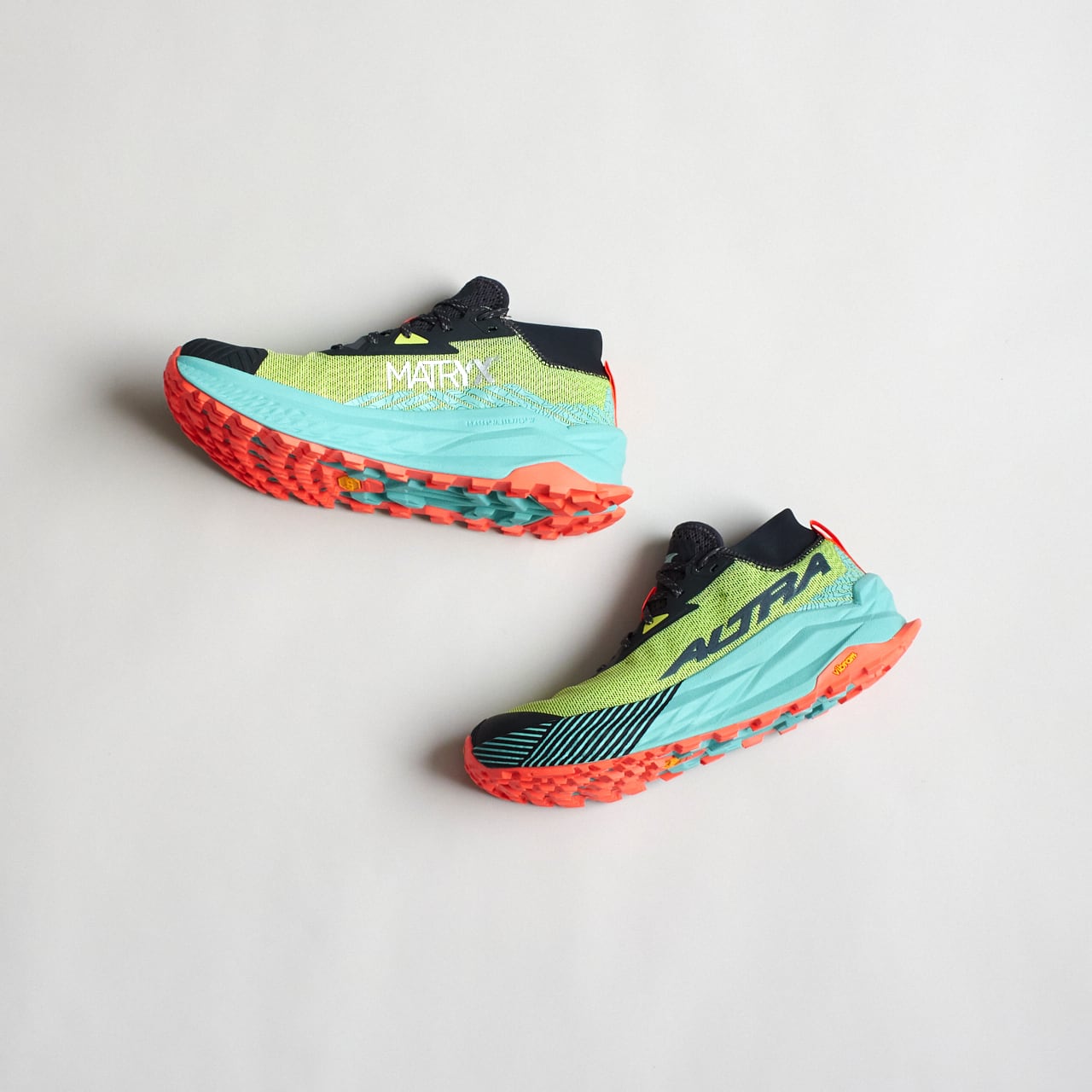 アッパーには、強靭なケブラー®繊維と高強度ポリアミドを組み合わせたMatryx®素材を採用。それをワンピース構造(一体生地)で立体的に織り上げることで、弱点となりうる縫い目を最小限に抑え、高いフィット感と過酷なトレイルに耐えうる卓越した耐久性を実現しています。