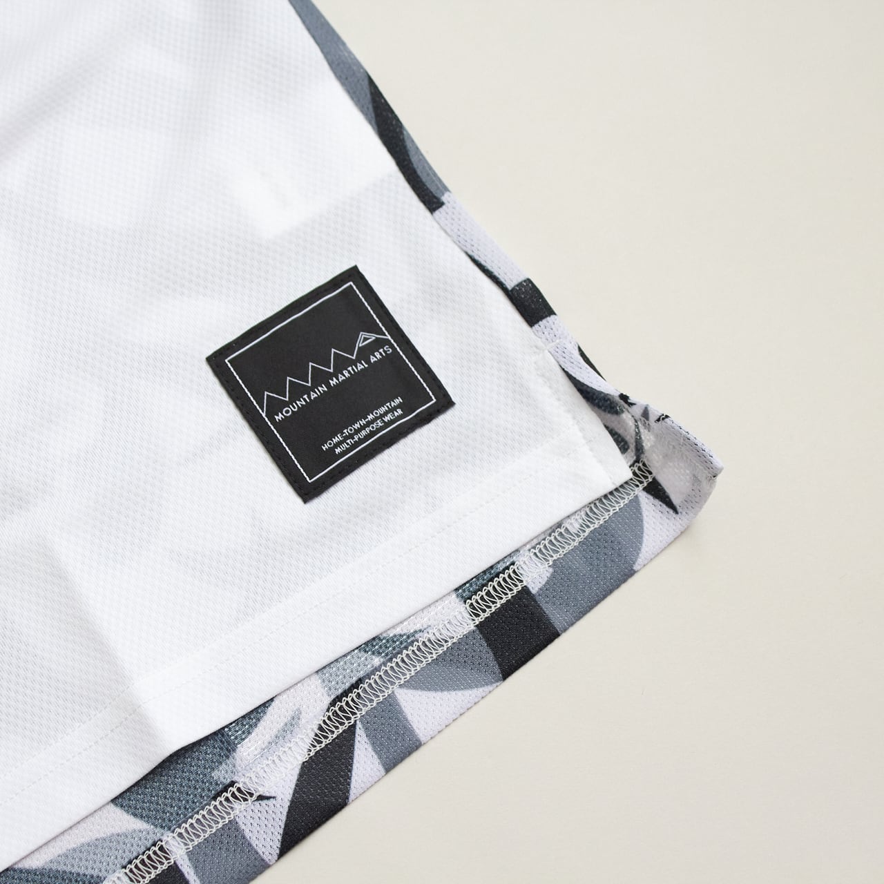 日本製のオリジナルボディは、MMA の考えるアクティビティに適したシルエットを追求。肩幅と身幅はタイトすぎないサイジングで、動きやすくストレスを感じにくい。背中を吸水速乾メッシュで大胆に切り替え、通気性を向上。高負荷や暑い時期のスポーツに対応する。裾にはスリットを入れ、後ろ裾が長いクラシカルなディティール。