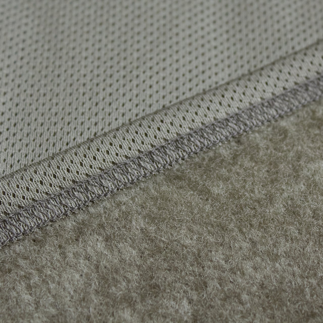 表面のメッシュと特殊な中空ポリエステル繊維を一体化させた高機能フリース素材。