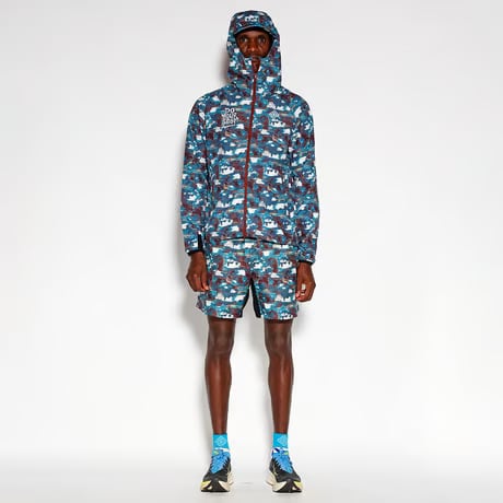 この高機能ファブリックに適したプリント方法のテストを幾度も重ね、素材に最も適し、生地の特製を損なわない昇華転写プリントで他色使いの柄を表現。