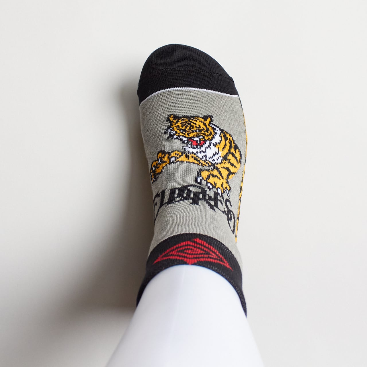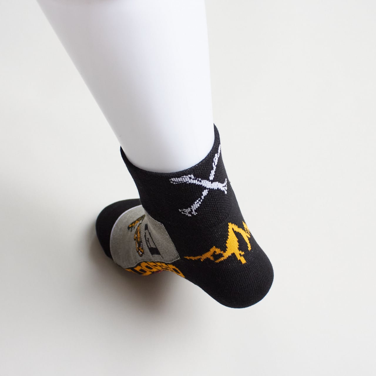 ウェアのデザインに使用したユーモラスなモチーフを、細やかなジャカード(織り柄)で表現した靴下です。