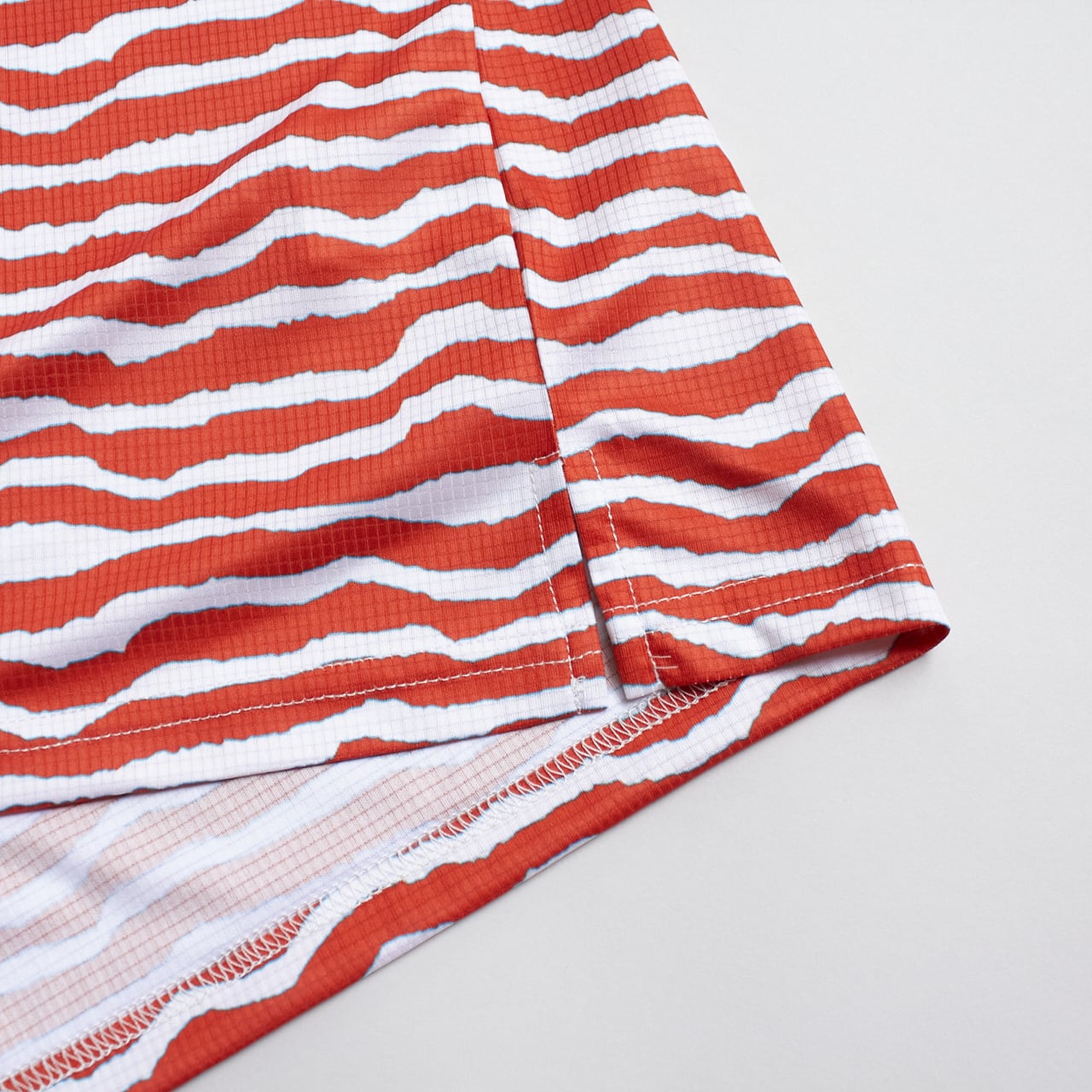スポーツウェアで多用される昇華転写プリントによるデザインの可能性を最大限に活かすべく、緻密で色鮮やかなグラフィックを表現したオリジナルテキスタイルを使用したランニングシャツです。