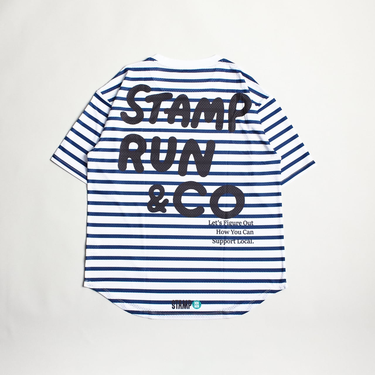 STAMP RUN&CO(スタンプランアンドコー)STAMP WIDE TEE (WHITE / NAVY BORDER) メンズレディースランニングワイドTシャツ
