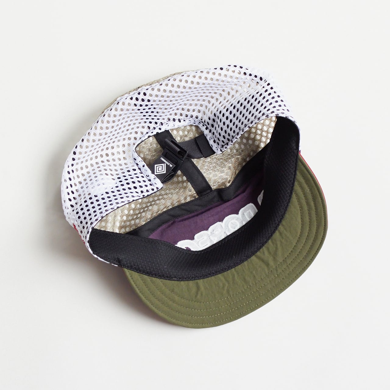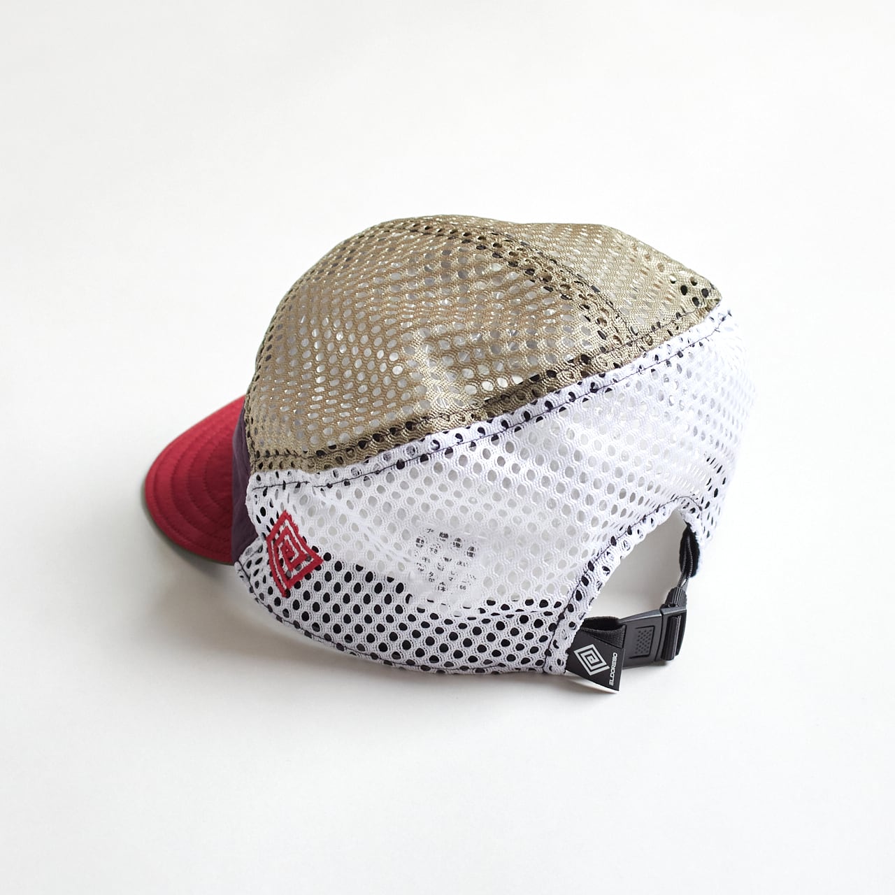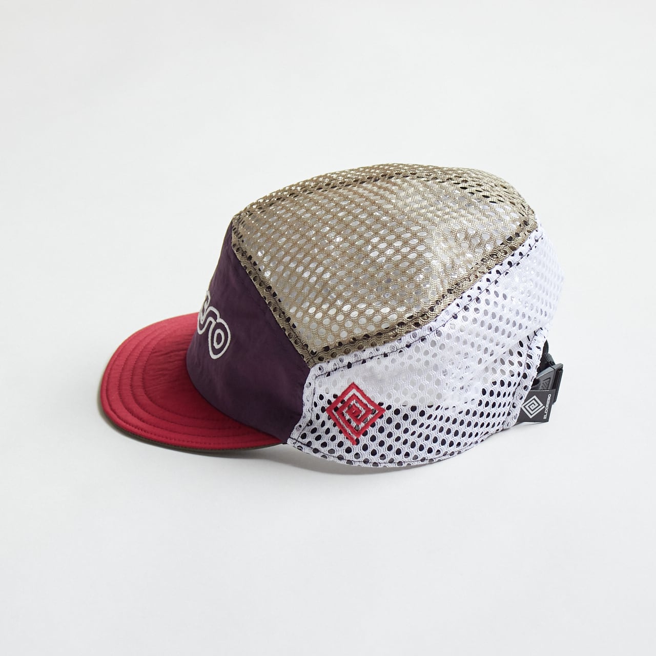 ナイロンとメッシュのコンビネーションがスポーティーなキャップのフロントに、ブランドネームの刺繍をあしらったランニングキャップです。