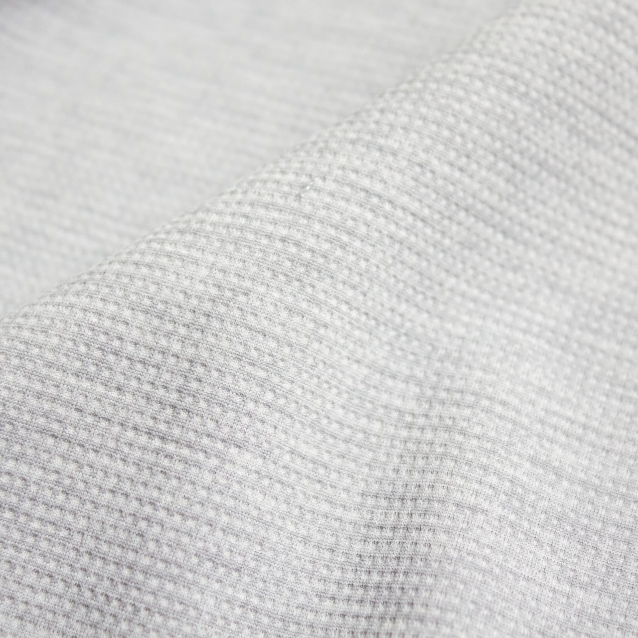 本体素材は、凹凸感があり軽量なテイジンの機能素材を使用。肌面は撥水糸で汗をかいてもべたつかず、吸水速乾と抗UV機能を備える。しなやかで肌触りがよく、ライトアクティビティから長時間のヘビーアクティビティにも対応する。天然素材に比べ、洗濯しても速く乾くメンテナンス性のよさも魅力のひとつ。
