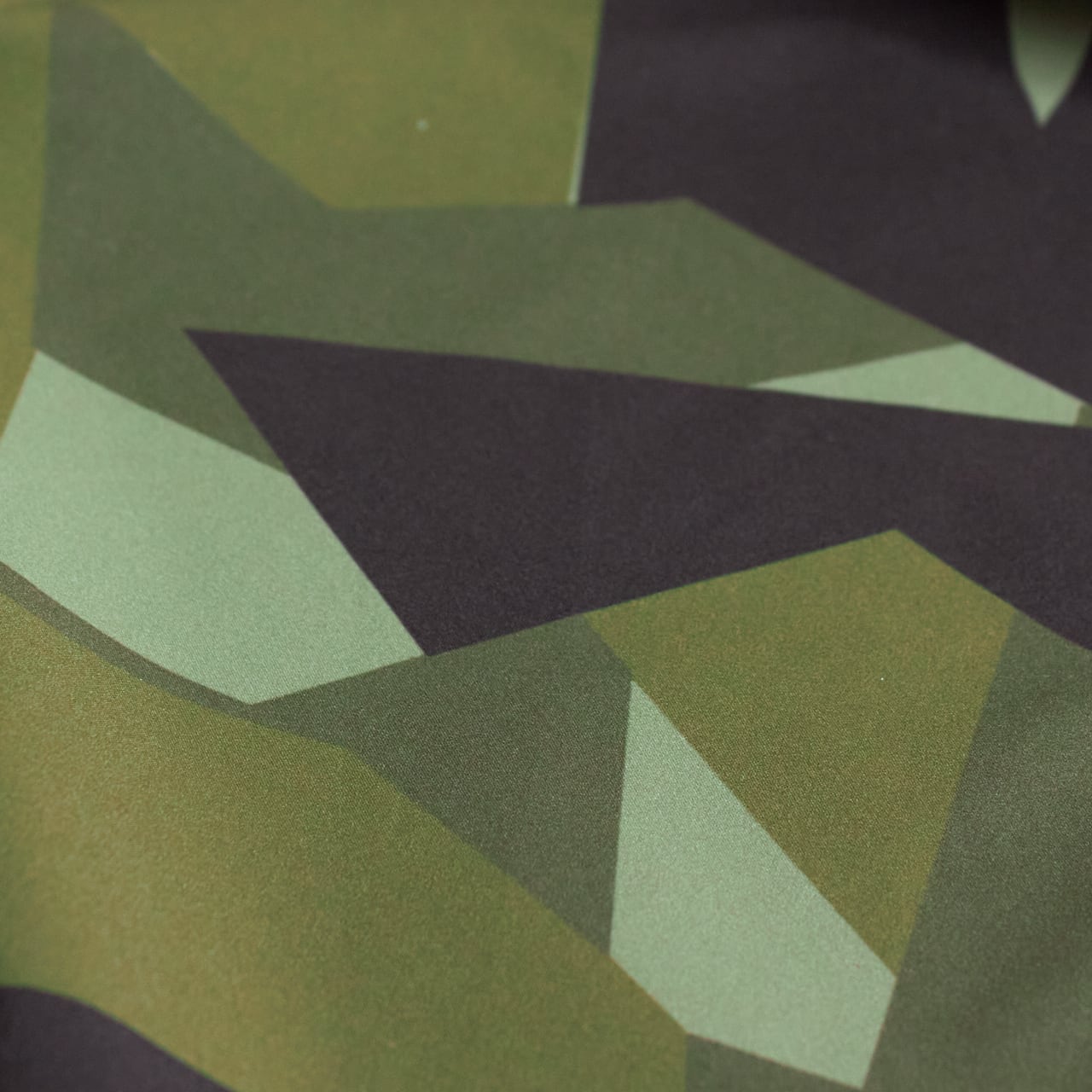 前面は撥水+ストレッチ、背面はより柔らかいストレッチ素材で、