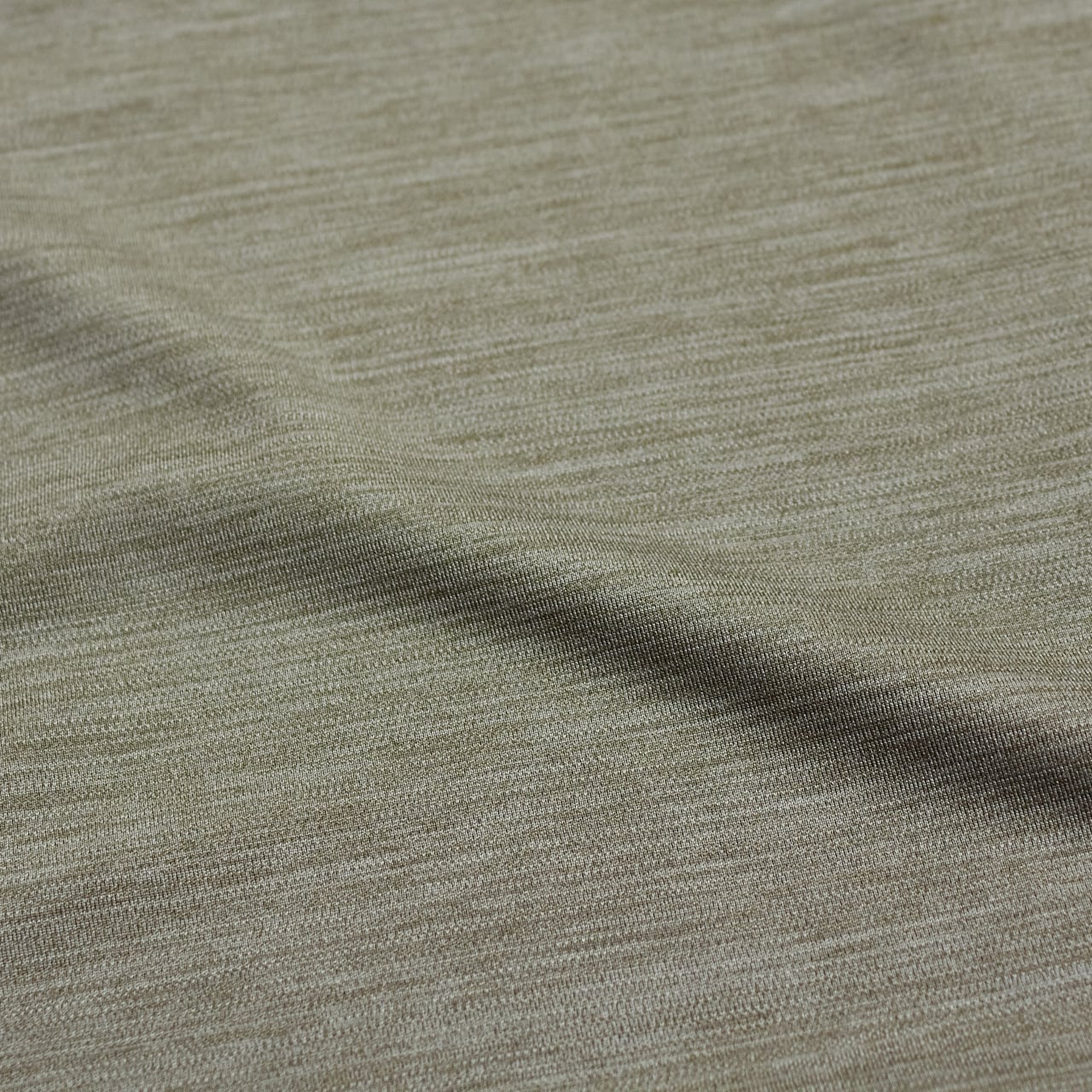 こちらのシャツには光沢が抑えられた表情で、吸水速乾性とUVカット効果を併せ持ち、汗離れの良いクイックドライのファブリックを採用しました。