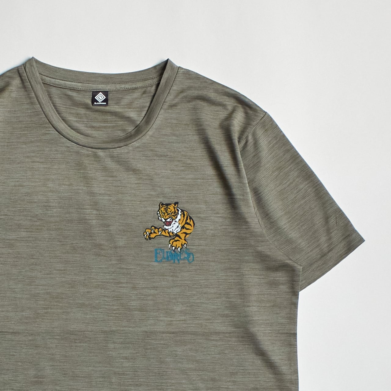 タイガーモチーフのグラフィックを前後にプリントした、半袖のランニングTシャツです。