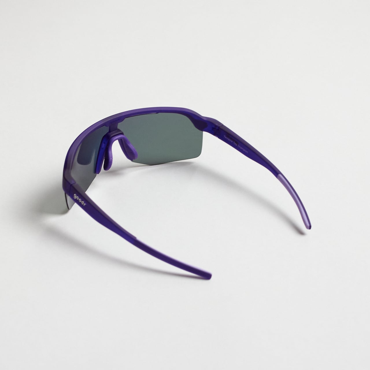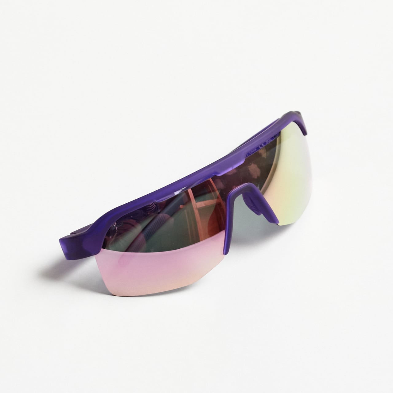 「君が鬼!」──このパープルのシールドサングラス(ハーフリムフレーム+ライトピンクのリフレクティブレンズ)をかければ、鬼ごっこ (Tag) でもイカ並みの運動能力を解き放てる。(正直、腕が8本あるのって鬼ごっこでチートじゃない?)