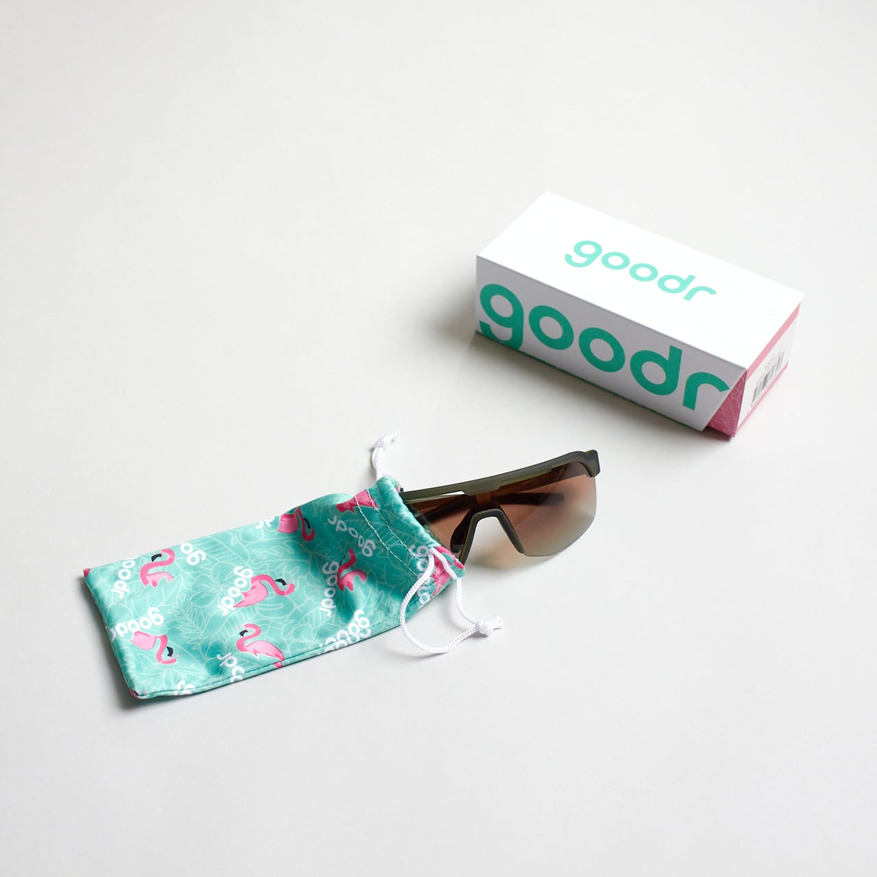 サングラスを入れているgoodr袋はマイクロファイバーのバックとなります。持ち運びはもちろん、お手入れにもぜひご利用ください。