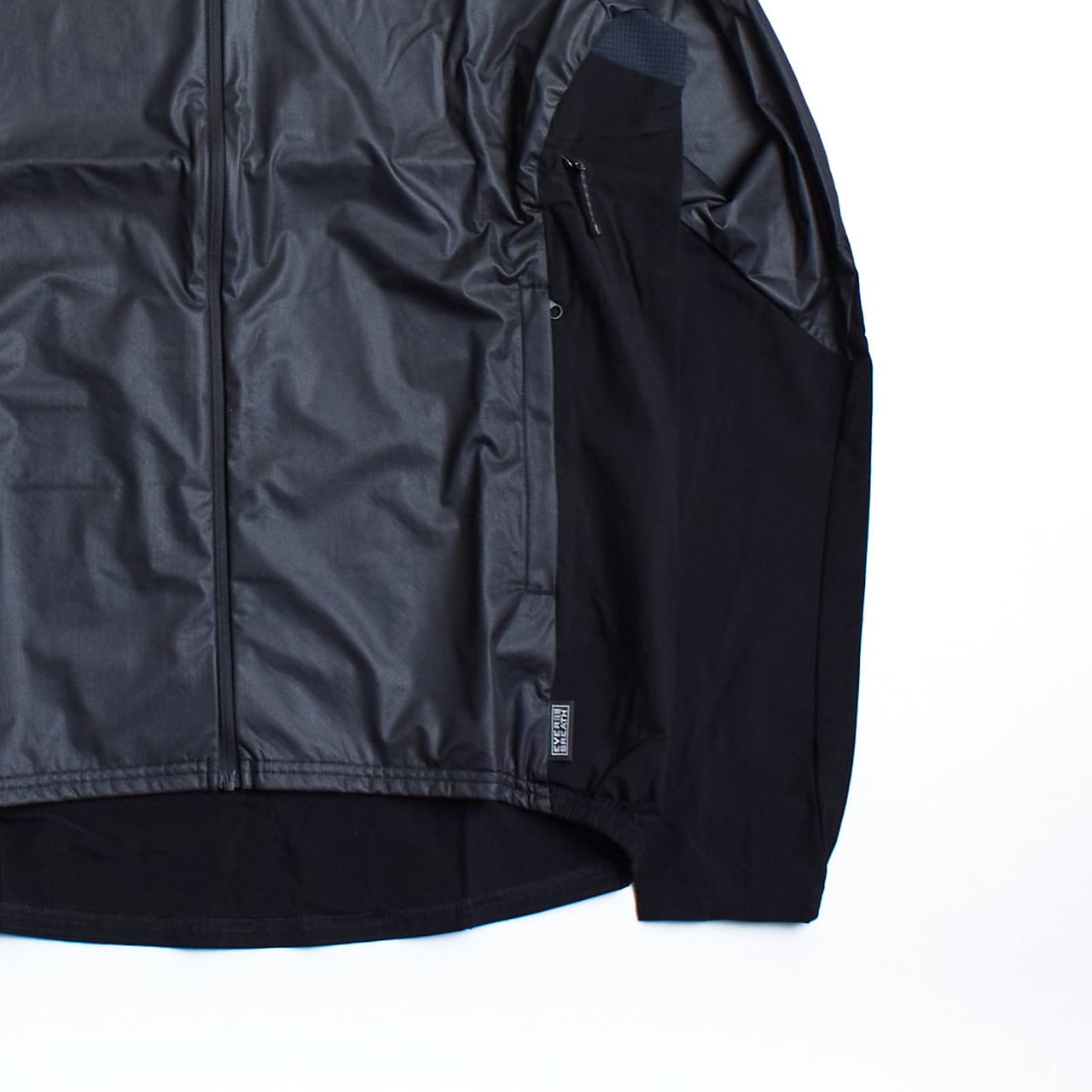 風を受ける前面・肩部には防水透湿素材「エバーブレスミュー」を採用し、寒風をしっかり防ぎつつ蒸れを抑制。脇下には高通気メッシュ素材を使用し、さらにリンクベントを開放することで内部の熱気を素早く排出できます。