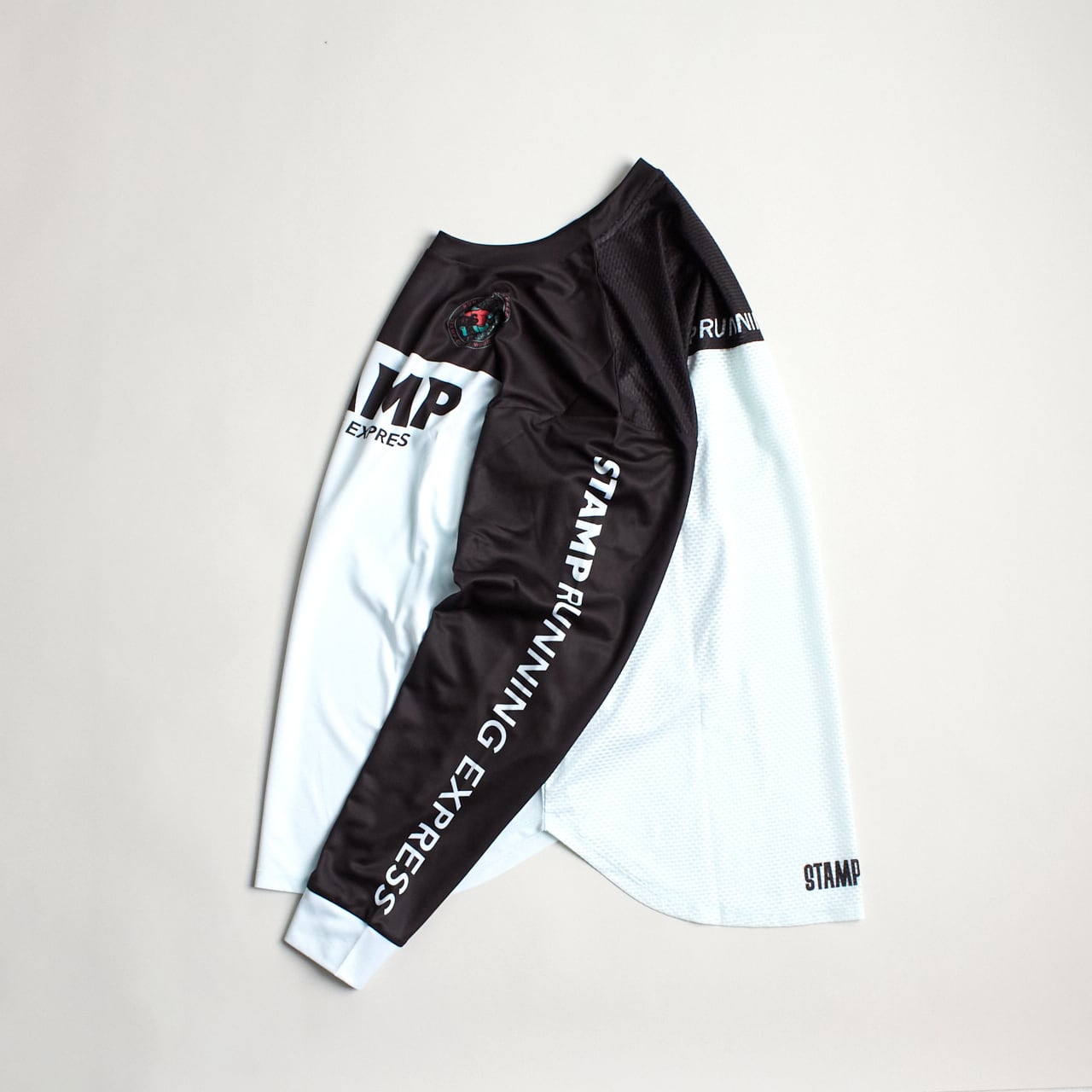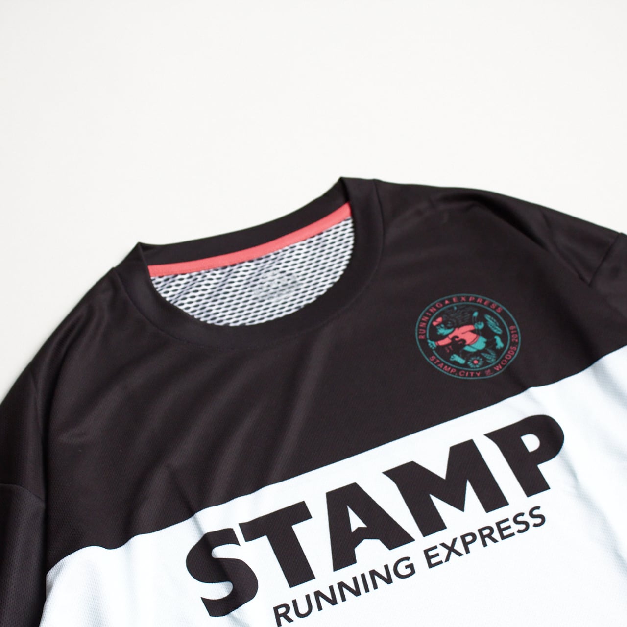 レトロなサッカーユニフォームをイメージしたスポーティなデザインの中にユーモラスなロゴマークが入った、STAMP らしい一枚です。