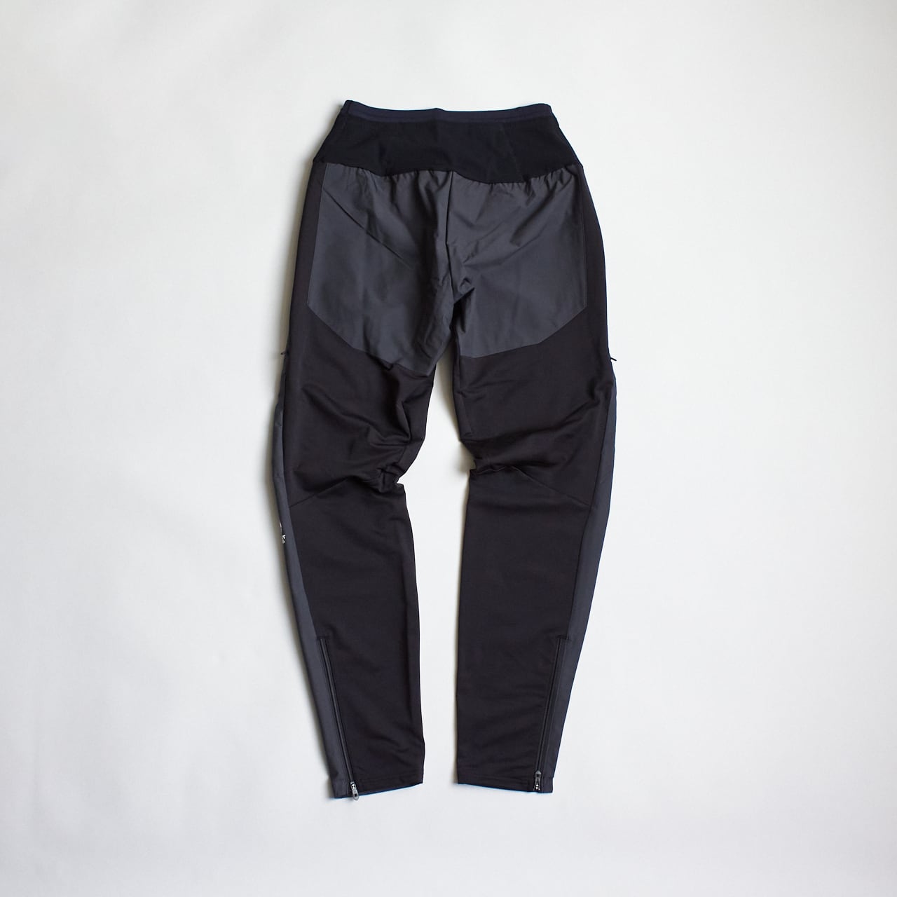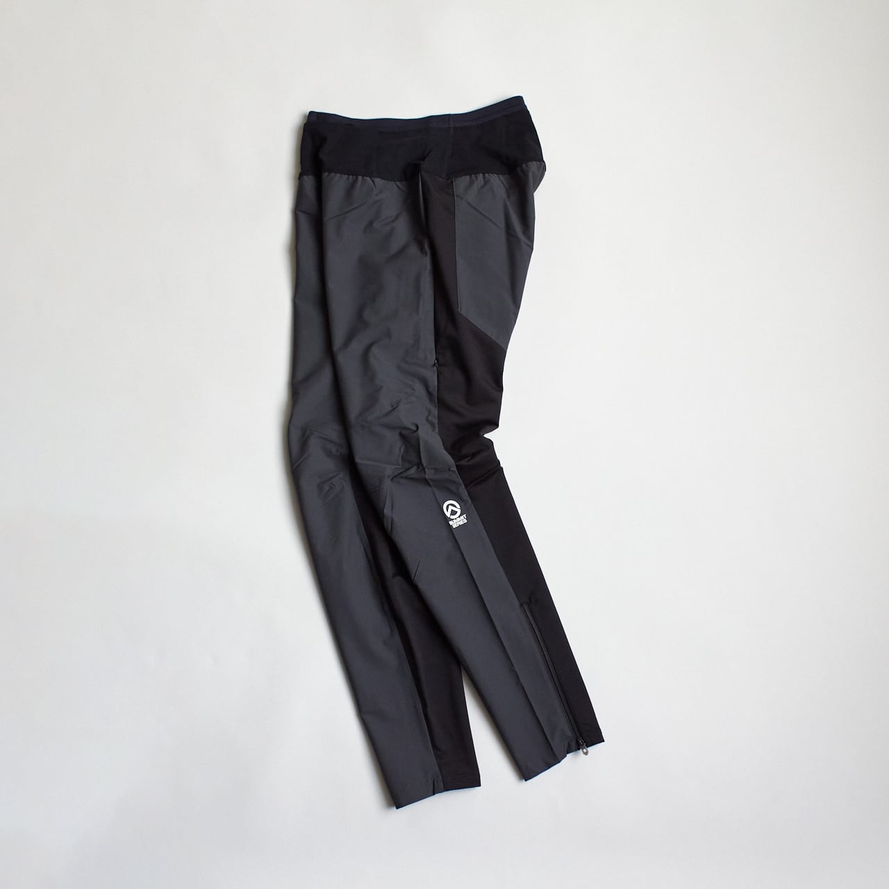 前面と背面大腿部に耐水素材使用/高ストレッチ素材のウエスト切替による高いフィット性/ウエストに4つのメッシュポケット/ウエスト背面アウター収納ベルト仕様/脇ファスナーベンチレーション仕様/ウエストスピンドル表裏両出し仕様/裾ファスナー仕様/リフレクターロゴ