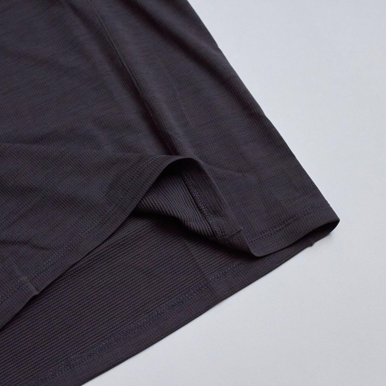 UVケア(UPF15-30、紫外線カット率85%以上)機能付き。繊維に付着したバクテリアの繁殖を抑えて、汗によるにおいの発生を軽減するポリジン加工を施し、長期の縦走登山や夏のキャンプなどに適しています。