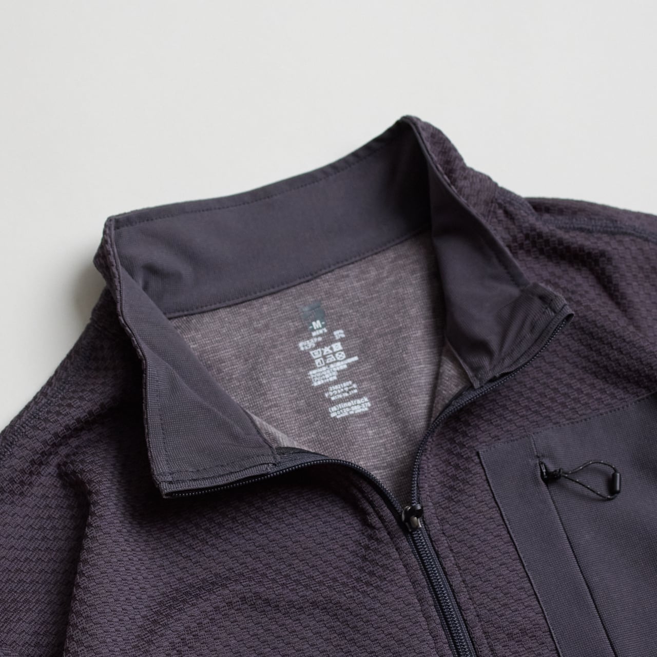 表面側は立体構造、肌面側は微起毛をかけることで、吸汗性と軽量性を損なわずに最大限の保温力を発揮できるように設計。厚手ベースレイヤーの弱点である「乾きにくさ」「重さ」を克服しました。