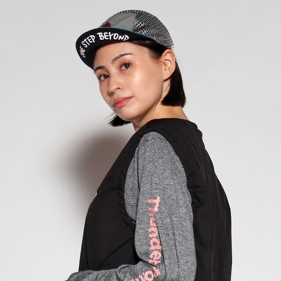 ブリム裏にも「One Step Beyond」のワードを手書き風のプリント配し、ツバを跳ね上げて被った際のアクセントになるように仕上げました。