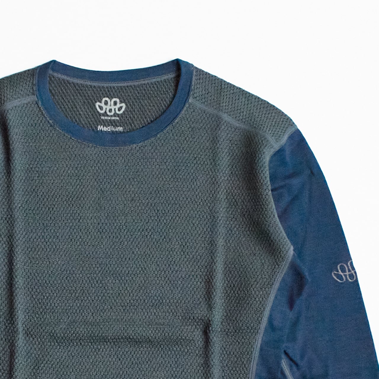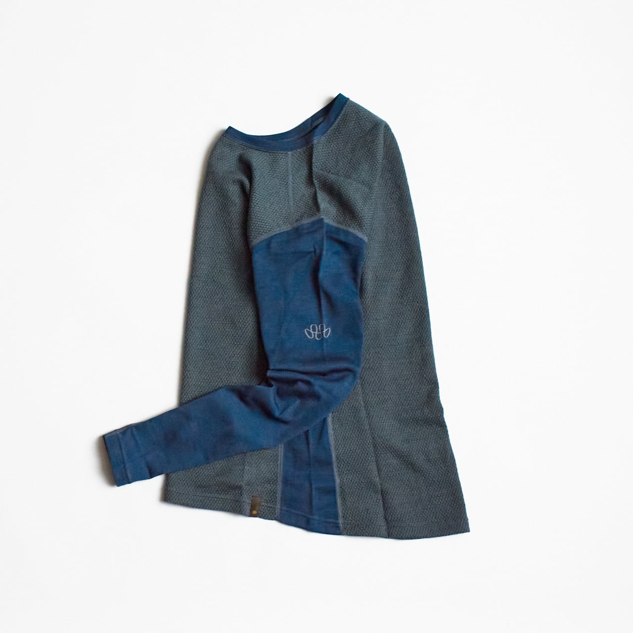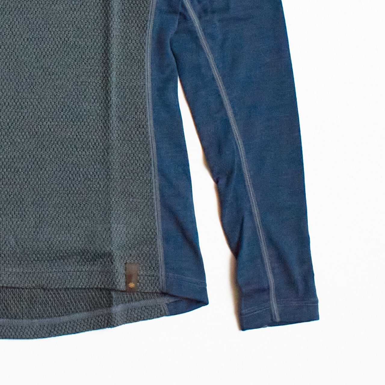 シンプルでレイヤリングしやすいロングスリーブは、体幹部に「MOB Wool」、腕と脇に「Axio 3D」を使用しています。「MOB Wool」を使った体幹部は、上に着るウェアの着脱や換気によって保温とクールダウンの素早い調節が可能。単体で着用すれば熱を溜め込まないので、運動強度が高いアクティビティにもおすすめです。冷えると温まりにくい腕と脇には「Axio3D」で適度な保温力をキーブします。女性の体型に合わせたパターンを採用しています。