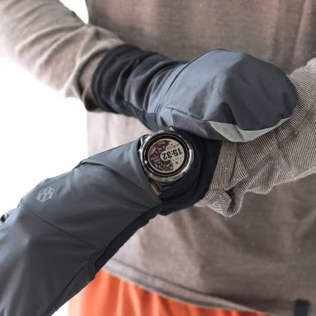 adaptがトレイルランニング用でアクティブなシーンに適しているのに対してbeyondはグローブ全体にメリノウール、防風のための収納式フードを採用したより保温性を確保したモデルとなります。