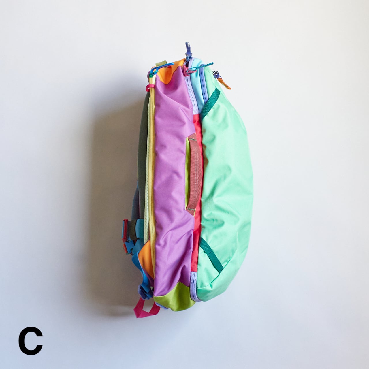 Allpaコレクションで展開されているスタンダードなカラー展開のAllpa 28L Travel Packと機能面は同じですが、このDel Díaコレクションバージョンは廃棄処分される予定だった上質なデッドストック生地を使用しているため、1つ1つのパックが世界に1つだけのものとなっています。