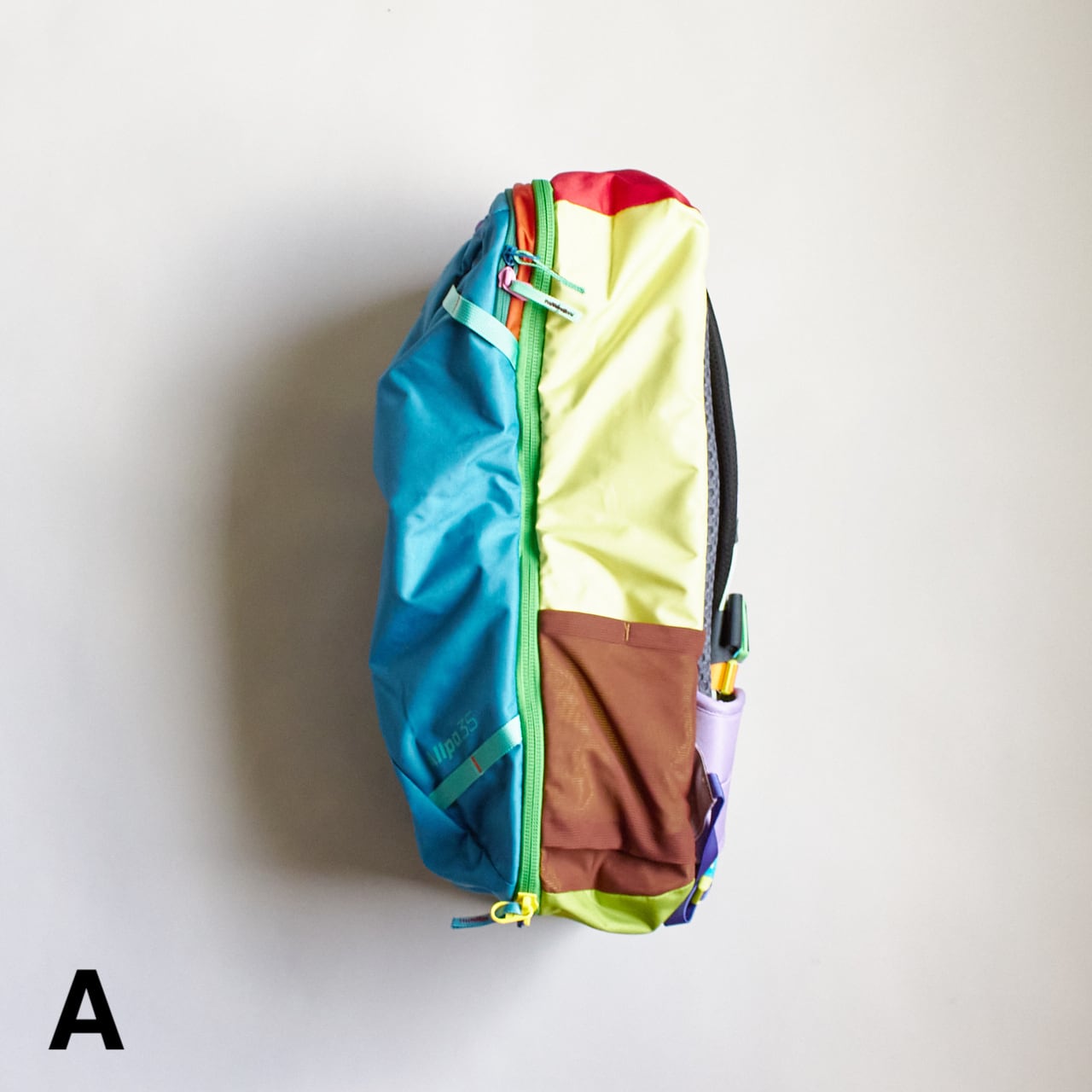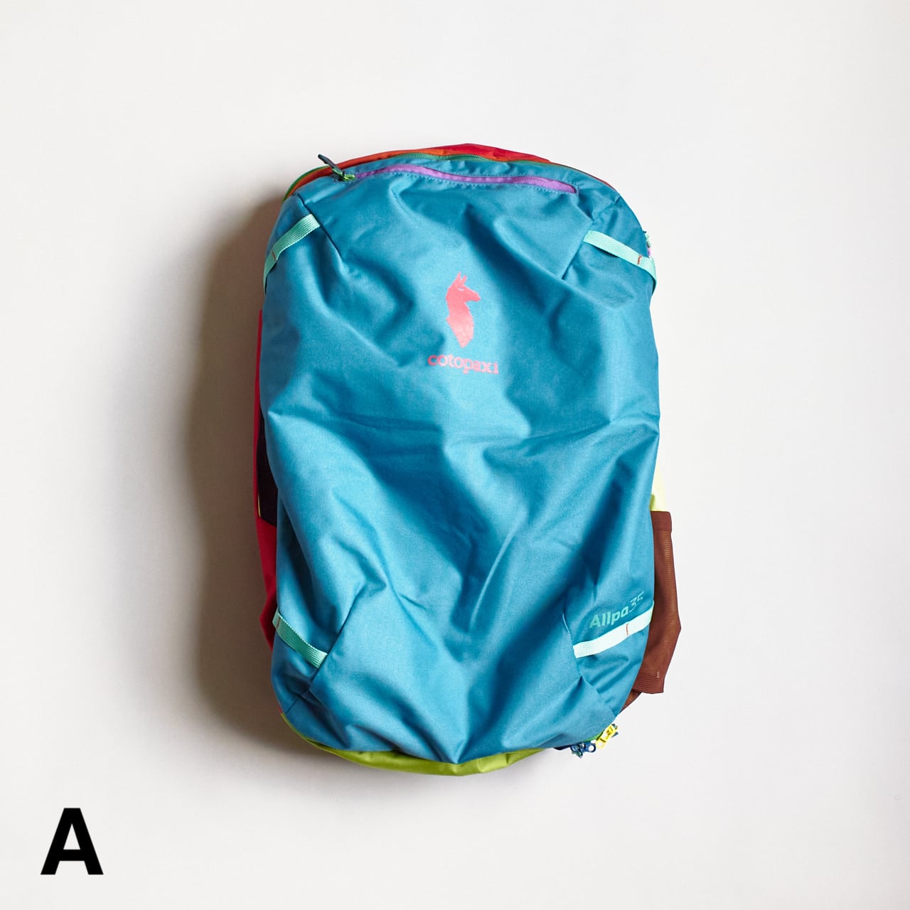 Allpaコレクションで展開されているスタンダードなカラー展開のAllpa 35L Travel Packと機能面は同じですが、このDel Díaコレクションバージョンは廃棄処分される予定だった上質なデッドストック生地を使用しているため、1つ1つのパックが世界に1つだけのものとなっています。