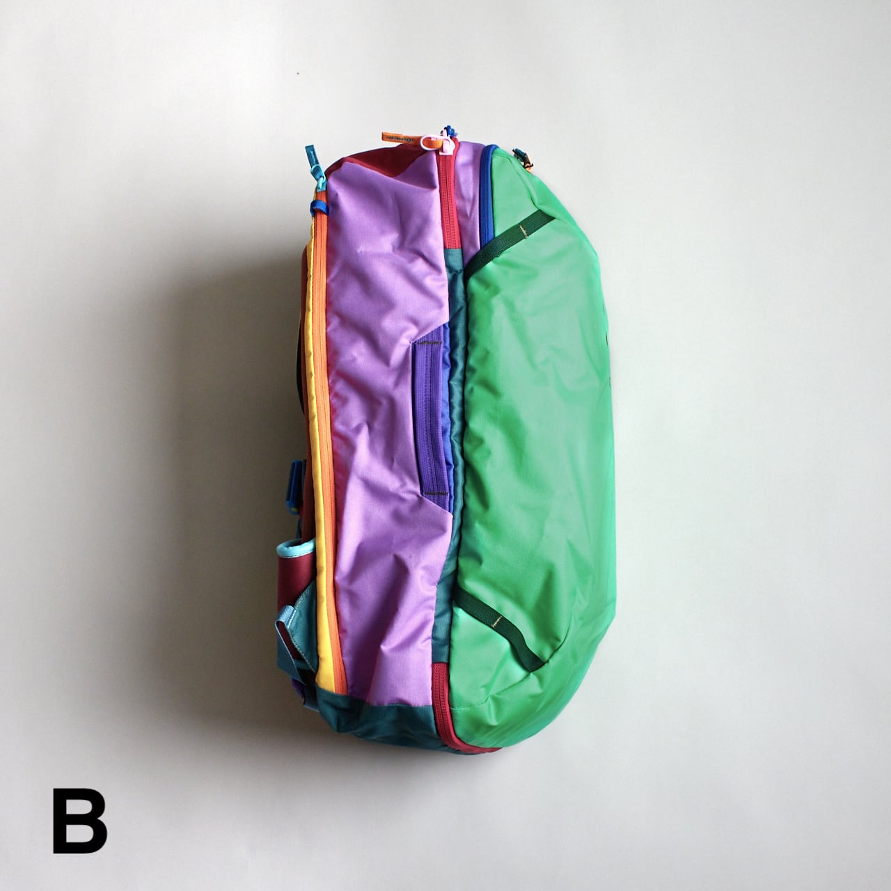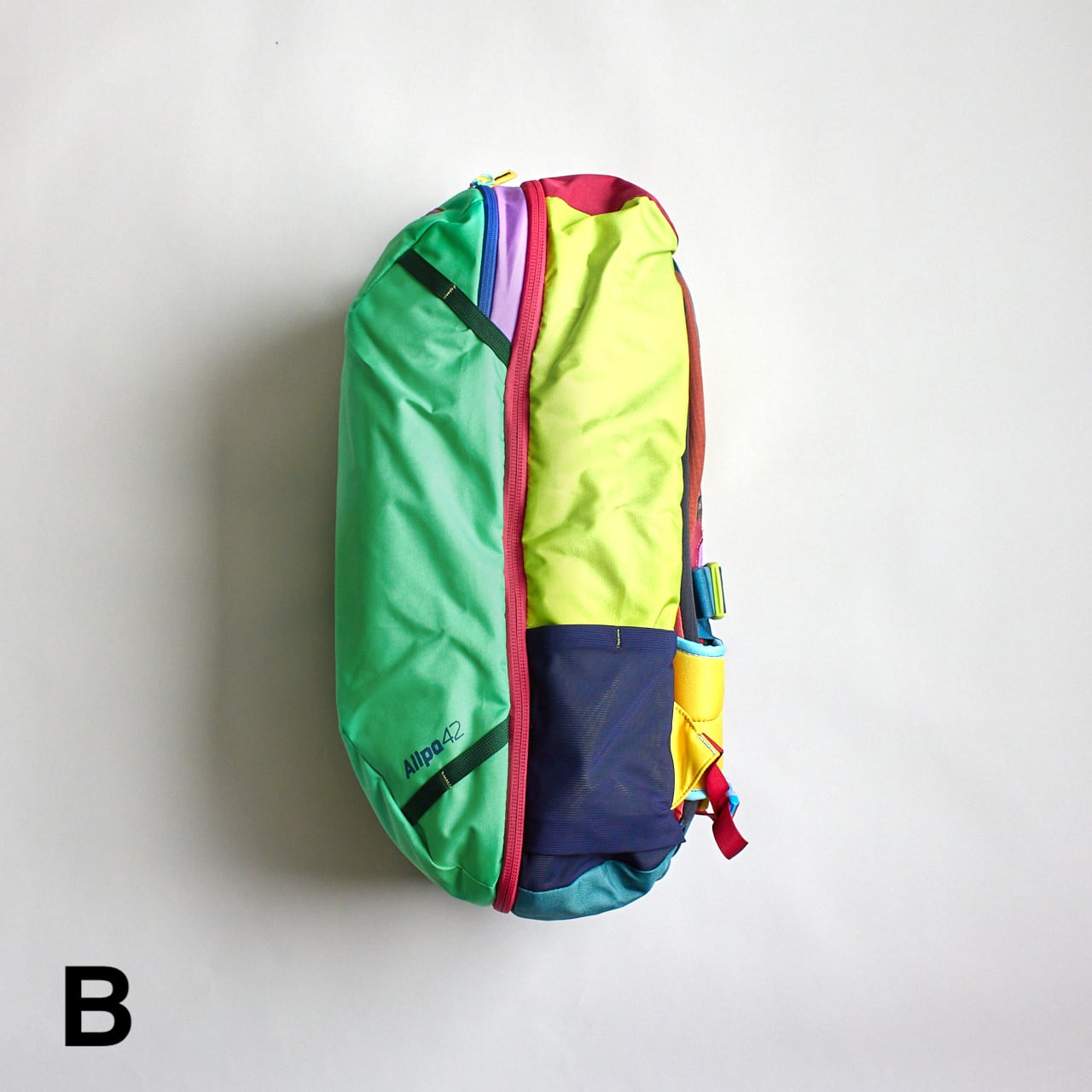 Allpaコレクションで展開されているスタンダードなカラー展開のAllpa 42L Travel Packと機能面は同じですが、このDel Díaコレクションバージョンは廃棄処分される予定だった上質なデッドストック生地を使用しているため、1つ1つのパックが世界に1つだけのものとなっています。