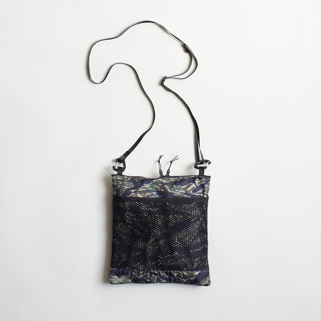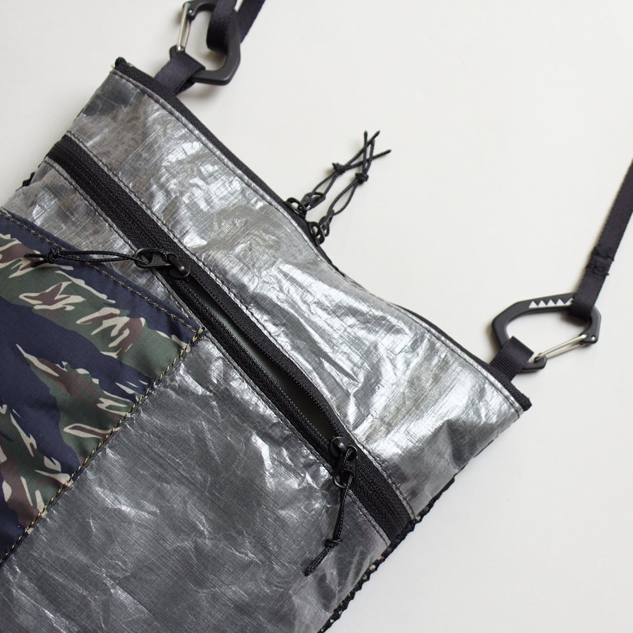 カモ柄を組み合わせたデザインが特徴的な軽量サコッシュ。