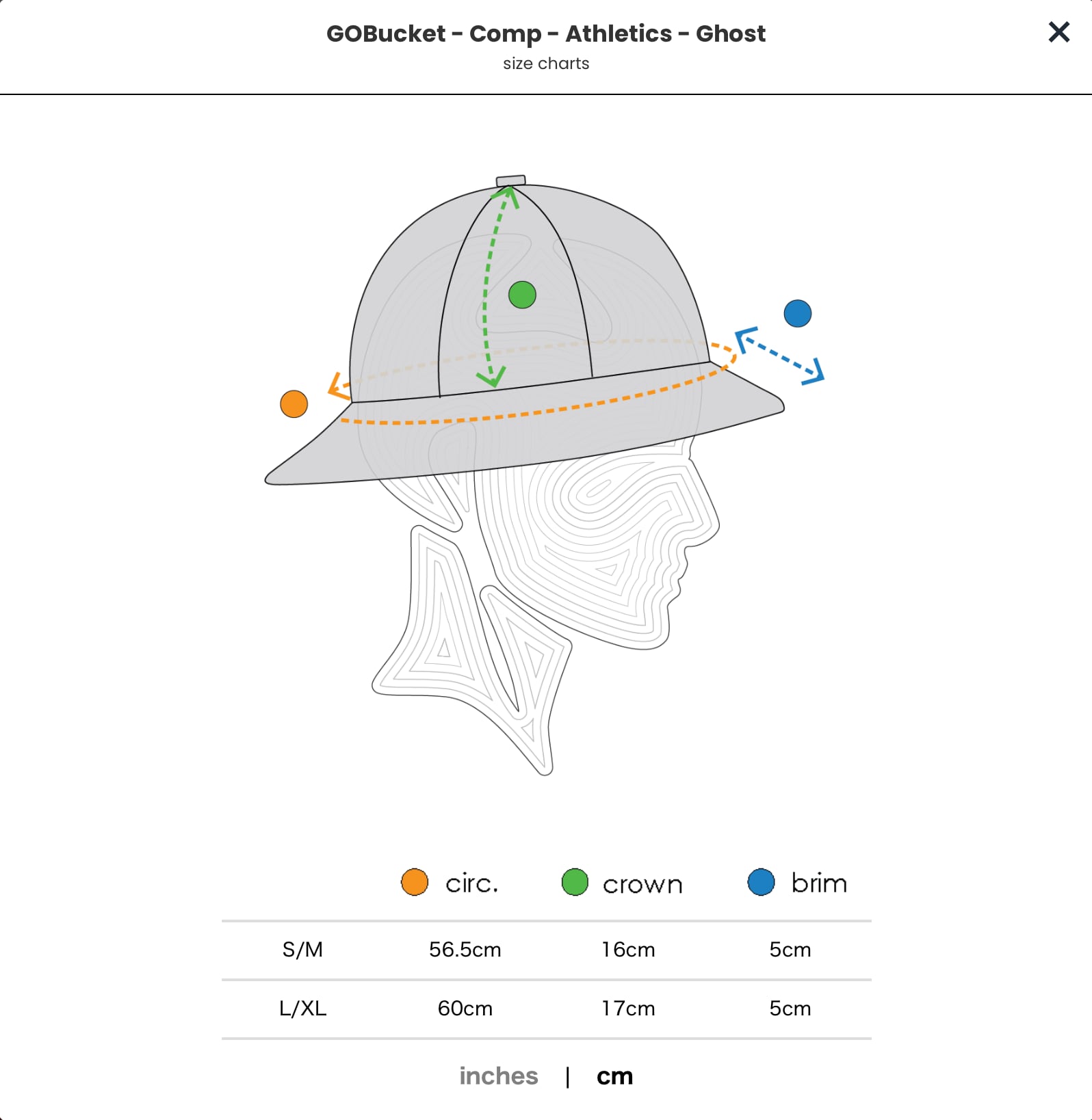 ※順に:頭周り / クラウン(深さ) / つば(ブリム)