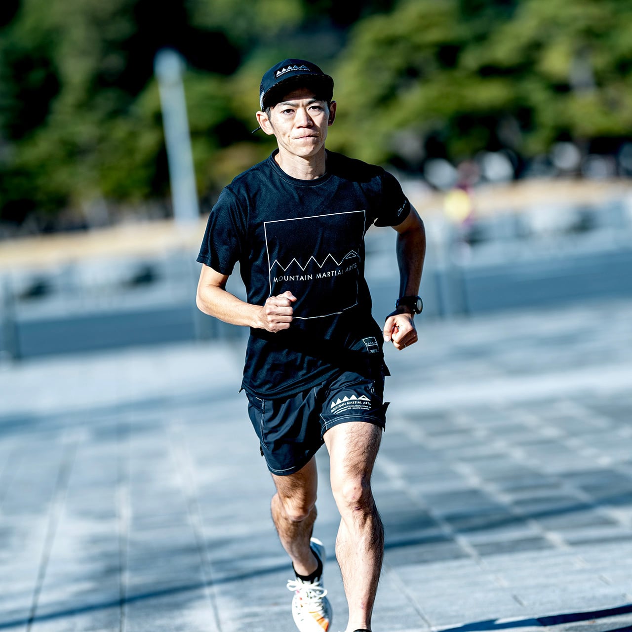 山をモチーフとしたシンボリックな MOUNTAIN MARTIAL ARTS のロゴをフロントに配したTシャツ。