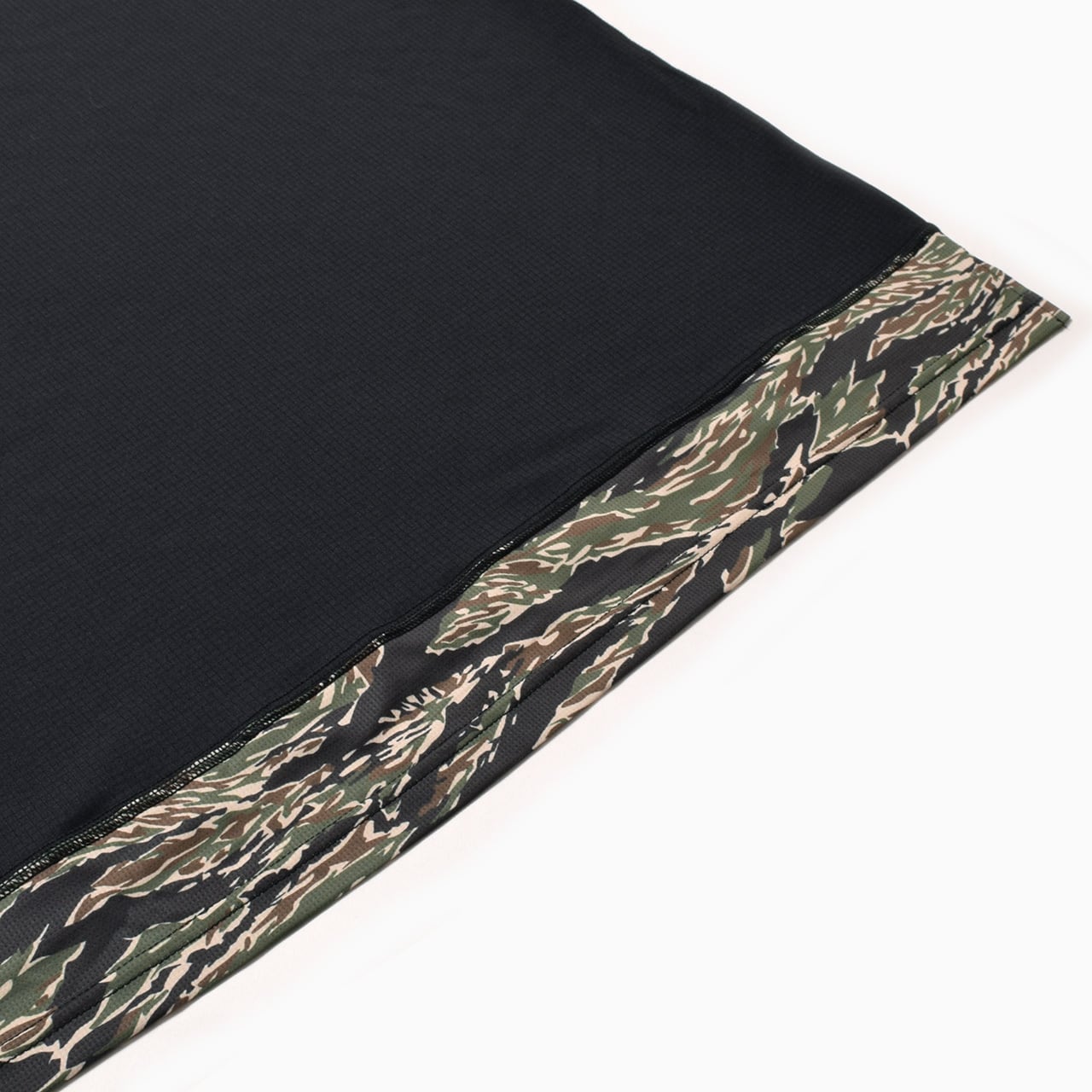 裾にはスリットを入れ、背面がやや長いクラシカルなディテールを採用。背面下部はタイガーカモ柄に切り替えています。