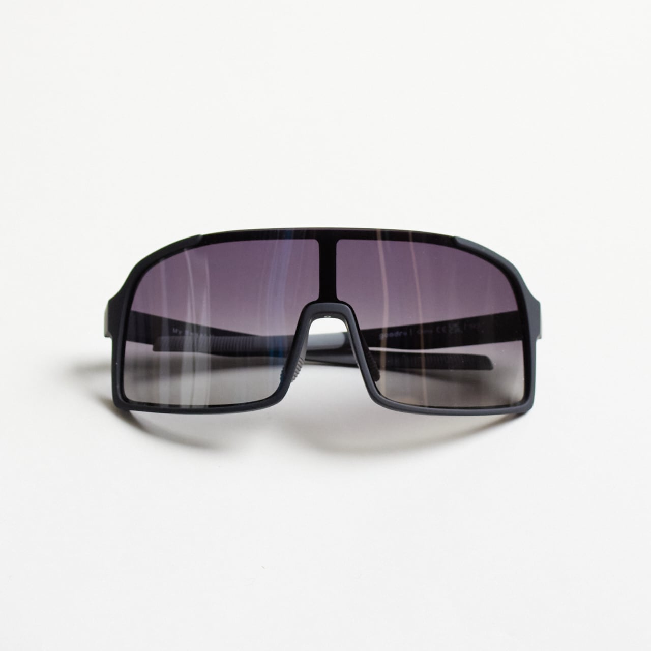 そんなハードコアなあなたにぴったりなのが、このブラックのシールドサングラス(ブラックグラデーションレンズ)。