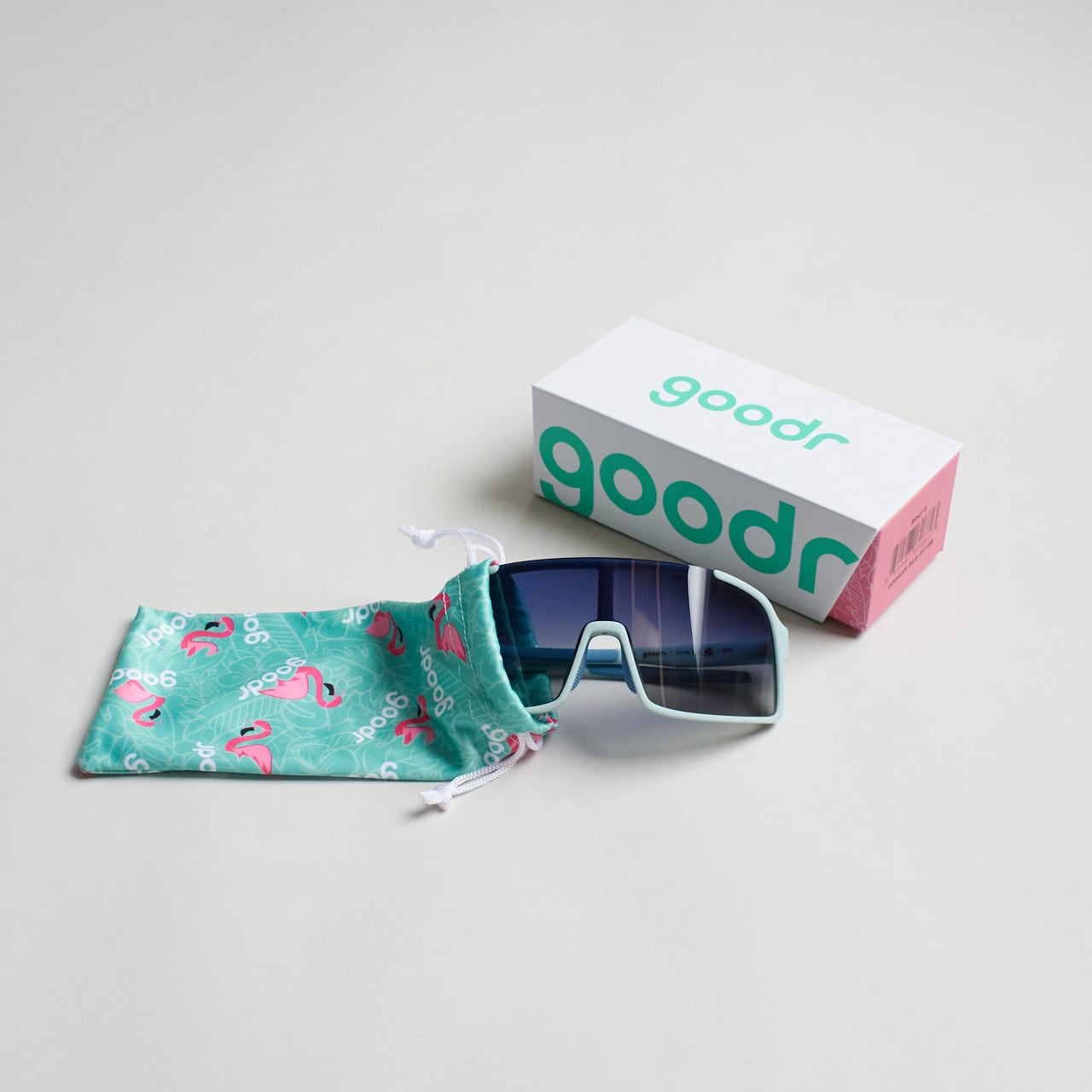 サングラスを入れているgoodr袋はマイクロファイバーのバックとなります。持ち運びはもちろん、お手入れにもぜひご利用ください。