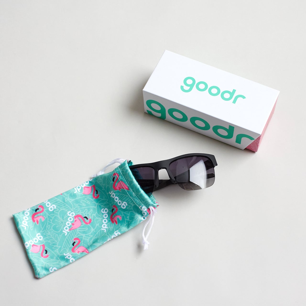 サングラスを入れているgoodr袋はマイクロファイバーのバックとなります。持ち運びはもちろん、お手入れにもぜひご利用ください。