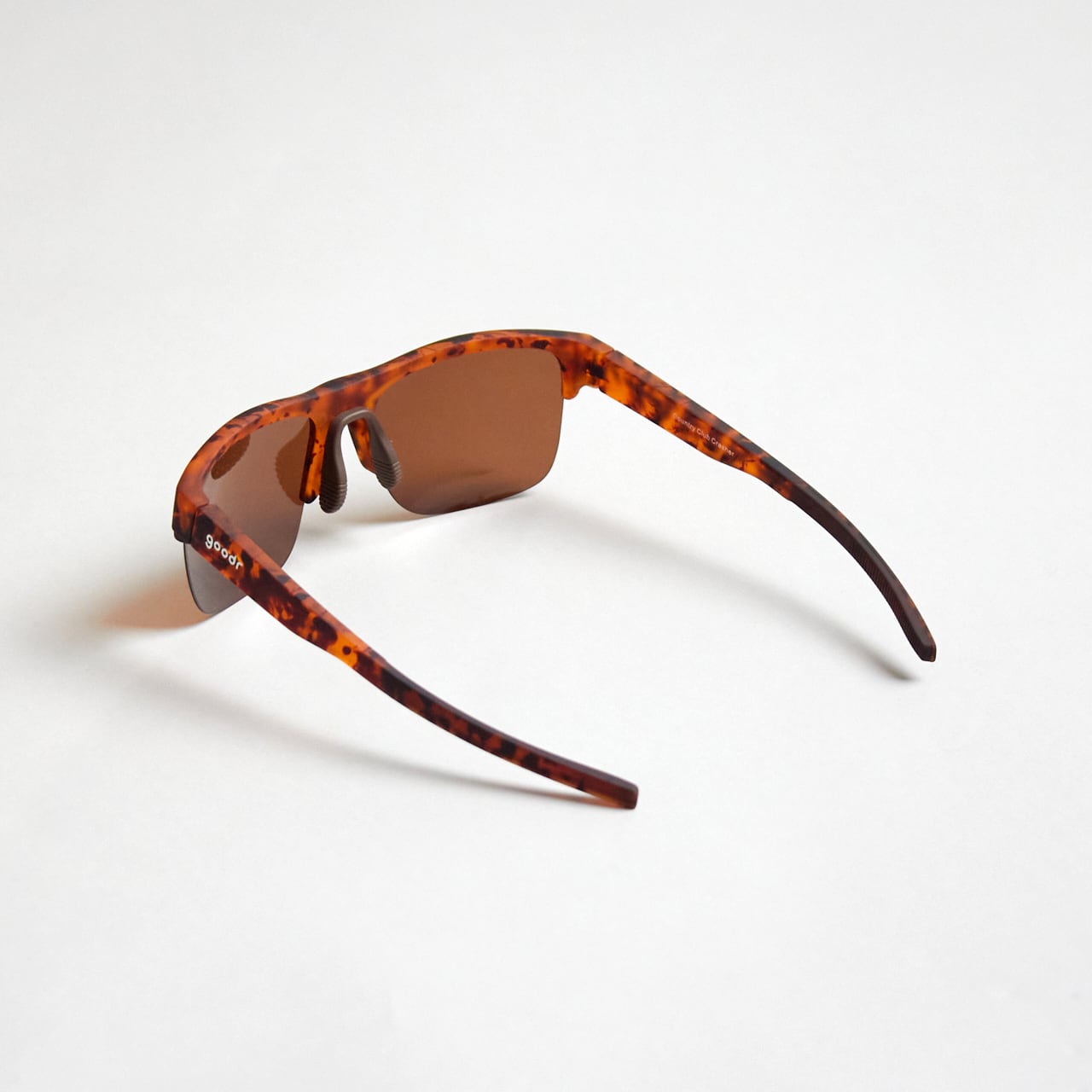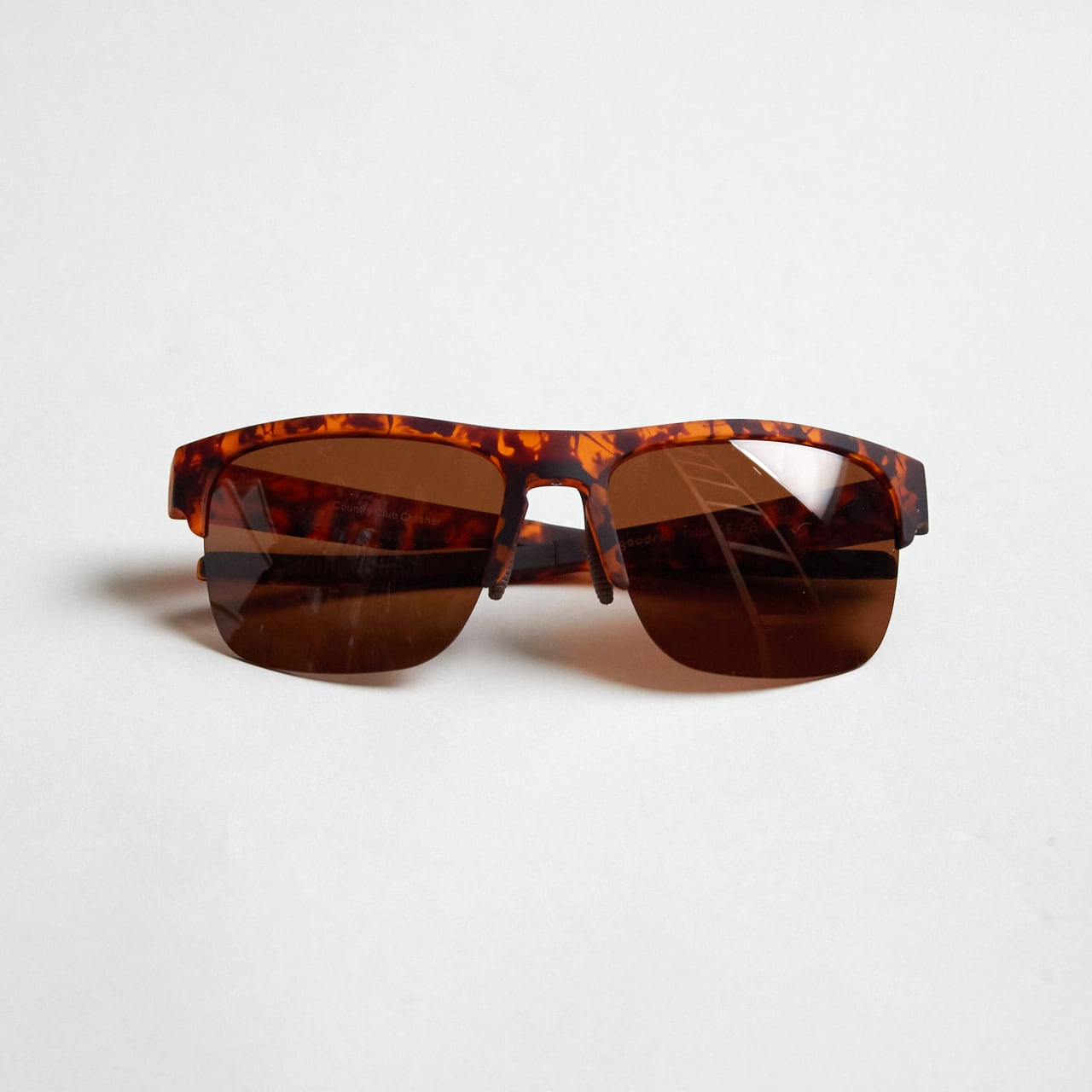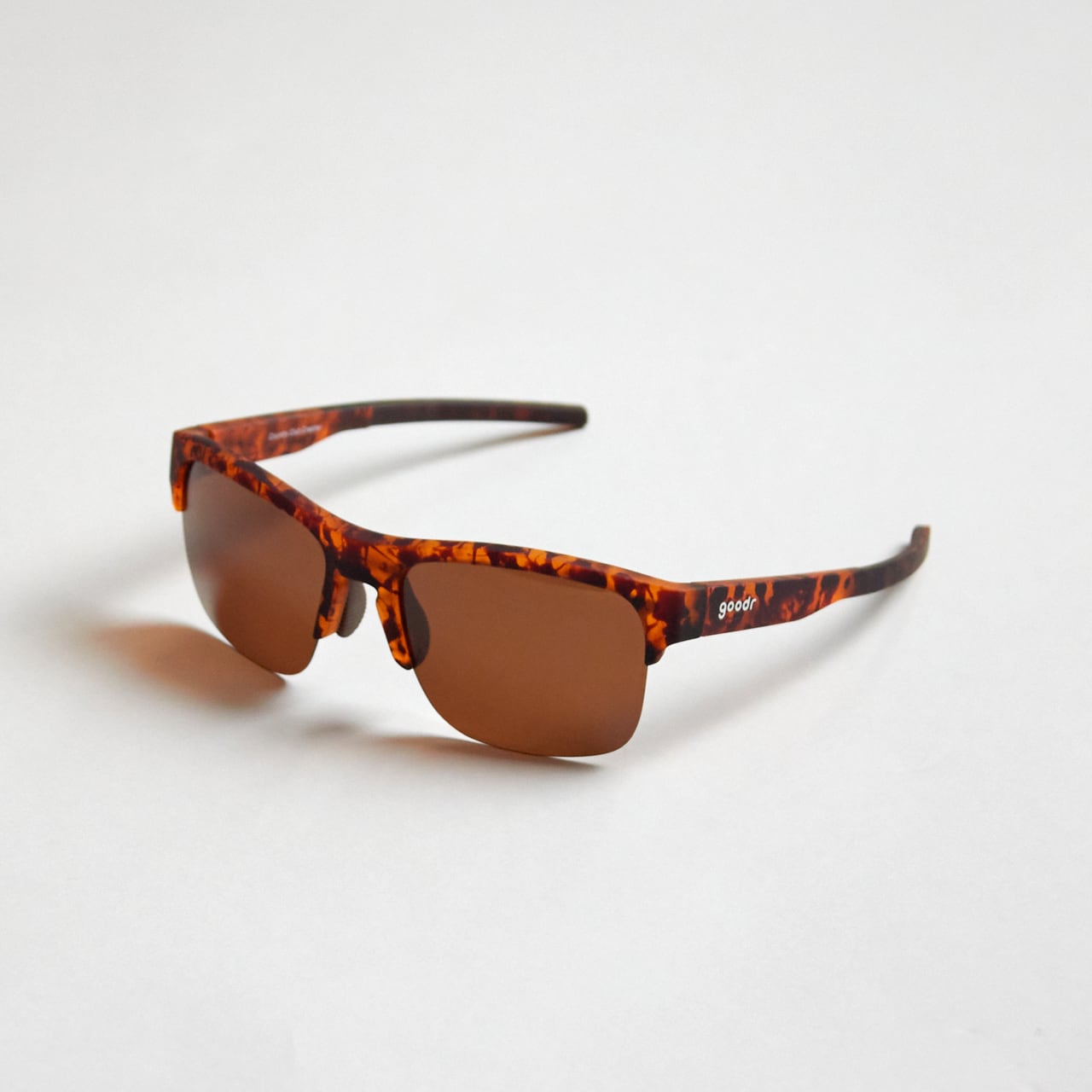 このブラウンのべっ甲柄サングラスをかけて、スタイリッシュにルールをぶち壊そう。ハーフリムのデュアルレンズ・ラップフレームとフル調整可能なノーズピースで、高速ゴルフカートチェイスが始まっても、しっかりフィットして外れない。
