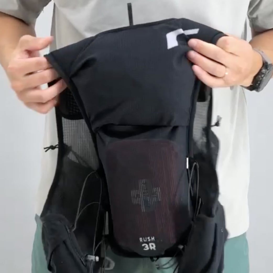 ランナーからの声をもとに、RUSHに最小容量のレーシングベストが登場。腕の可動を妨げない新設計と、激しい運動時でも熱がこもりにくい素材によって、スピードの出るショートレースに最適なモデルを開発しました。