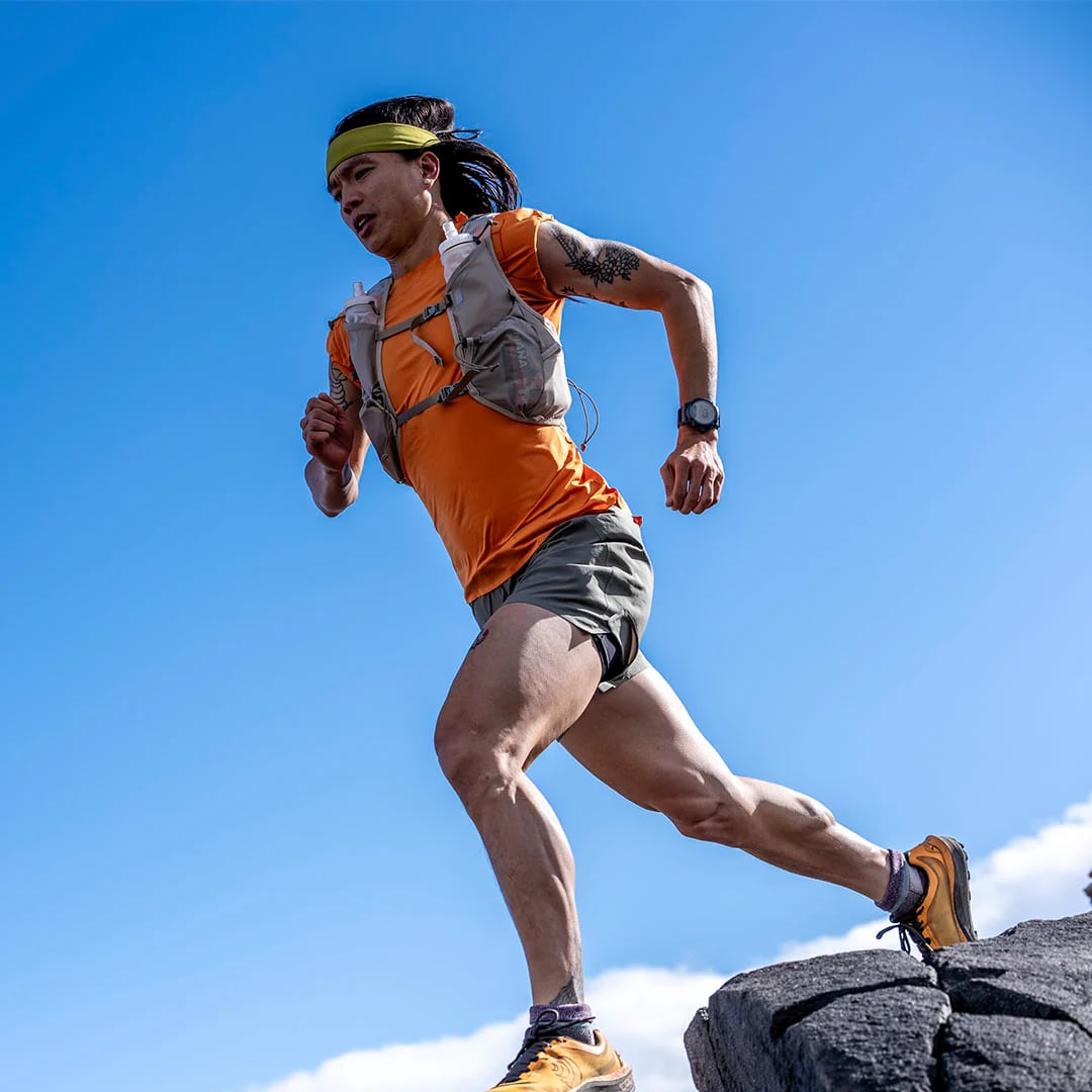 ランナーからの声をもとに、RUSHに最小容量のレーシングベストが登場。腕の可動を妨げない新設計と、激しい運動時でも熱がこもりにくい素材によって、スピードの出るショートレースに最適なモデルを開発しました。