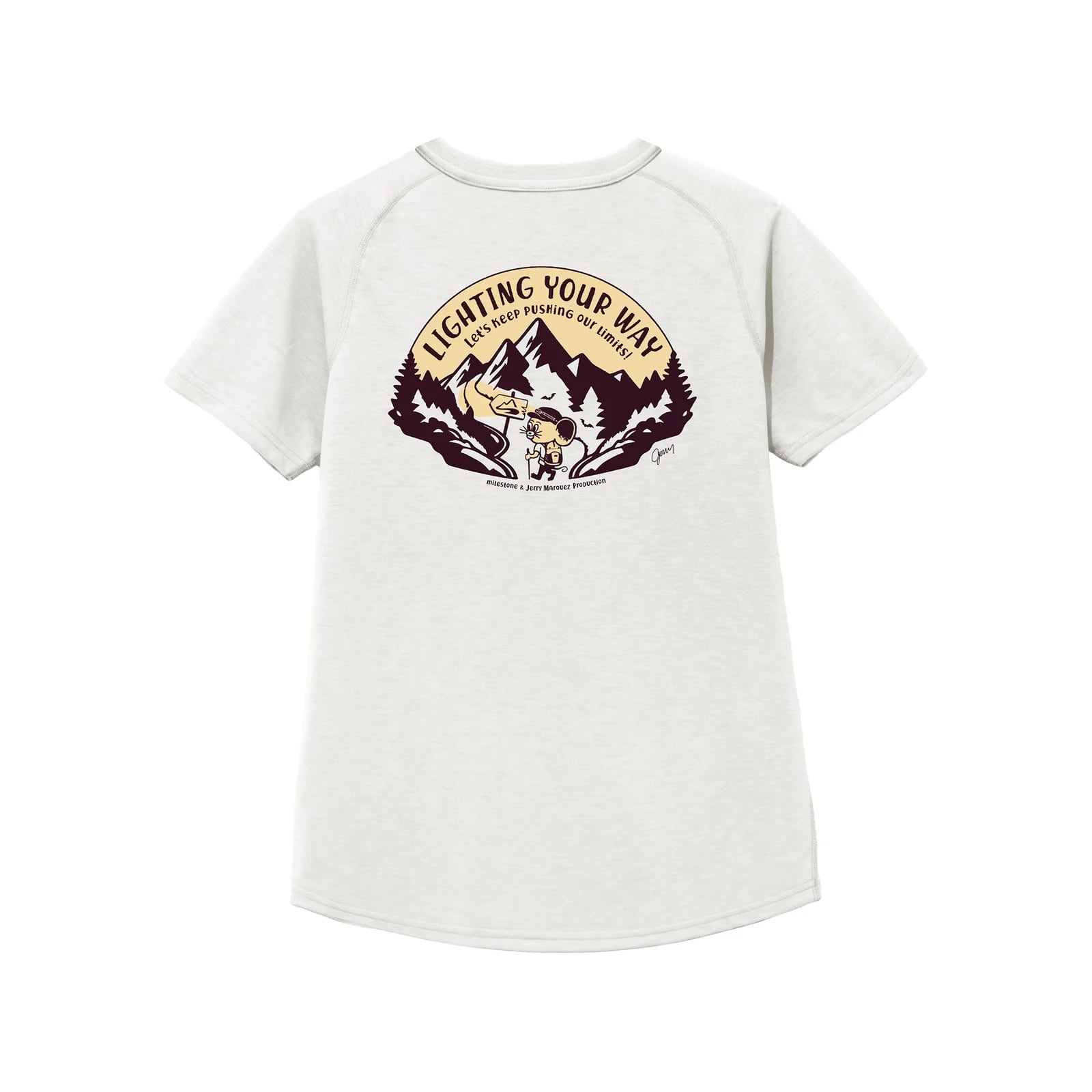 milestone(マイルストーン)【milestone & Jerry Marquez production】milestone Original T-Shirt Canvas "Let's Keep Pushing Our Limits!" -オフホワイト メンズレディースTシャツ