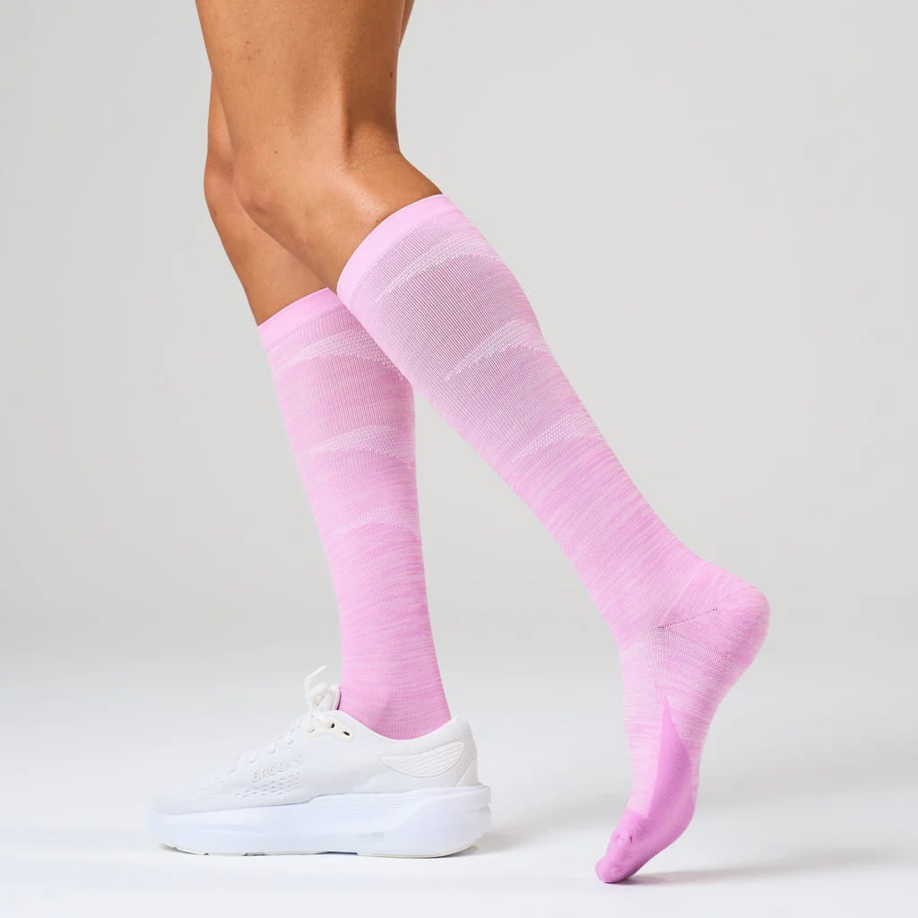 長時間のランや移動、立ち仕事など、脚の負担を軽減したいときにおすすめのコンプレッションソックスです。