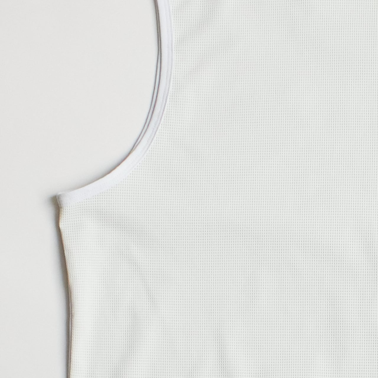 より快適なランニングをテーマに設計された、バックメッシュ仕様のノースリーブ。