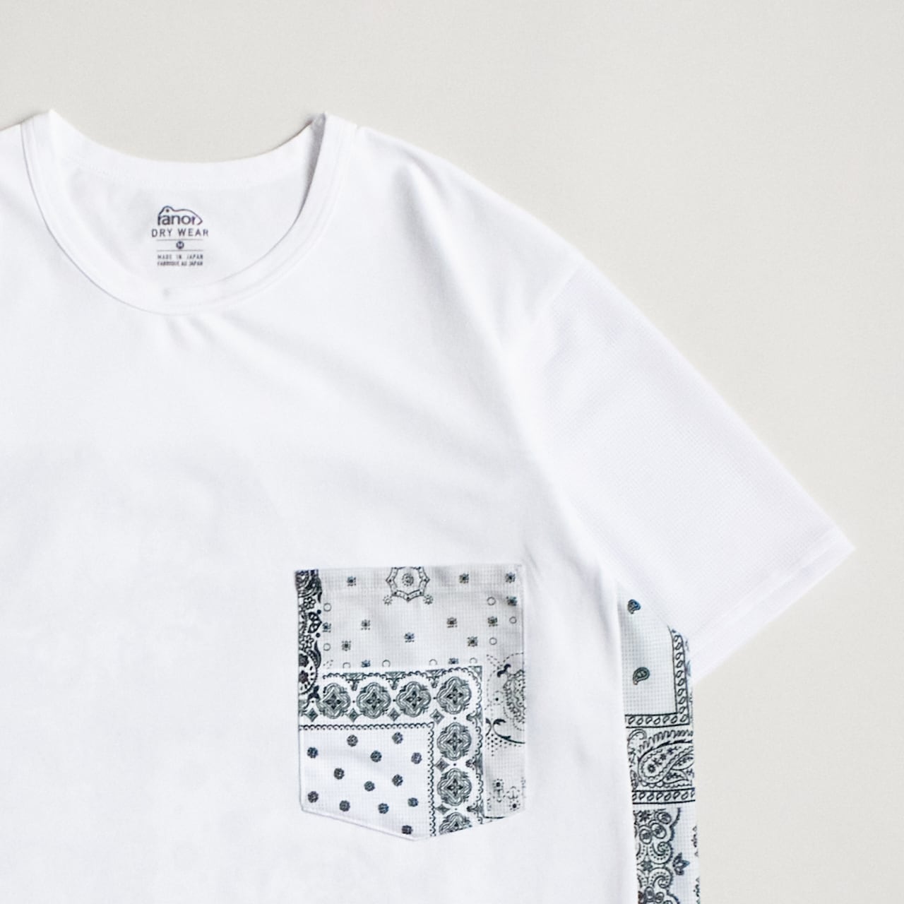 異素材の組み合わせで仕上げた、ranorのバンダナTシャツ。